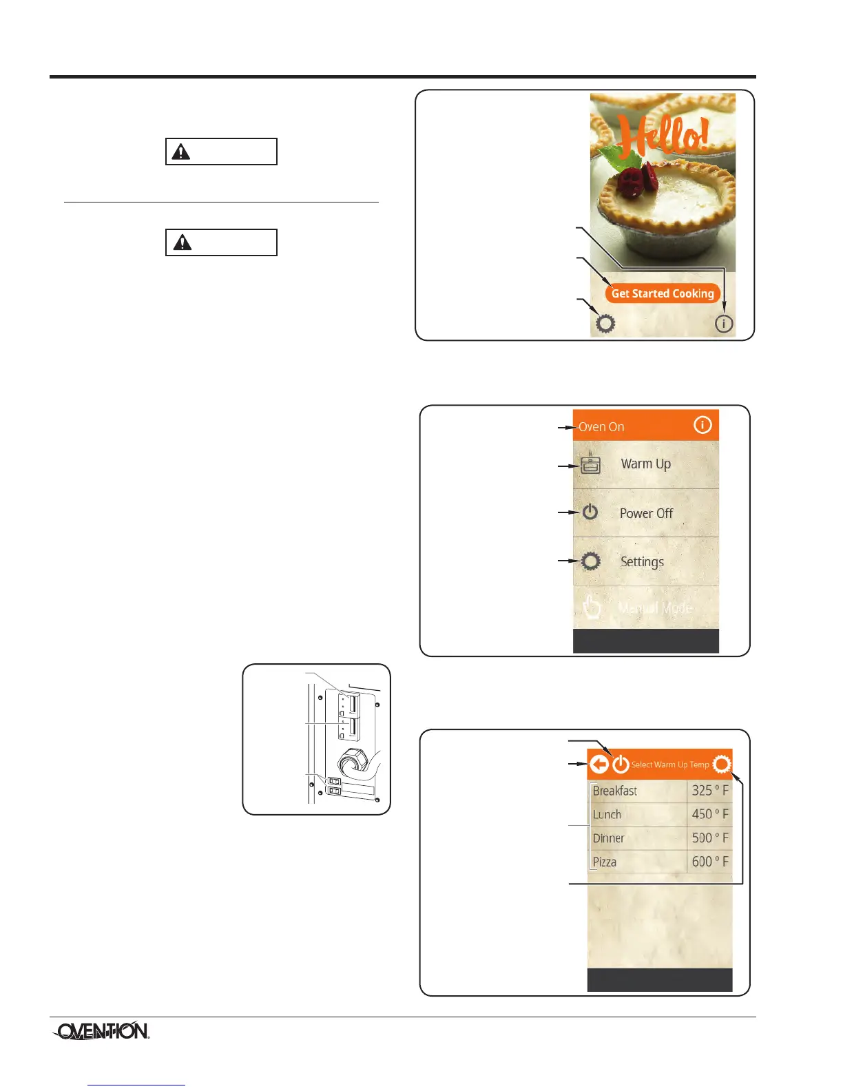 to prepare the oven for cooking. The Startup screen will