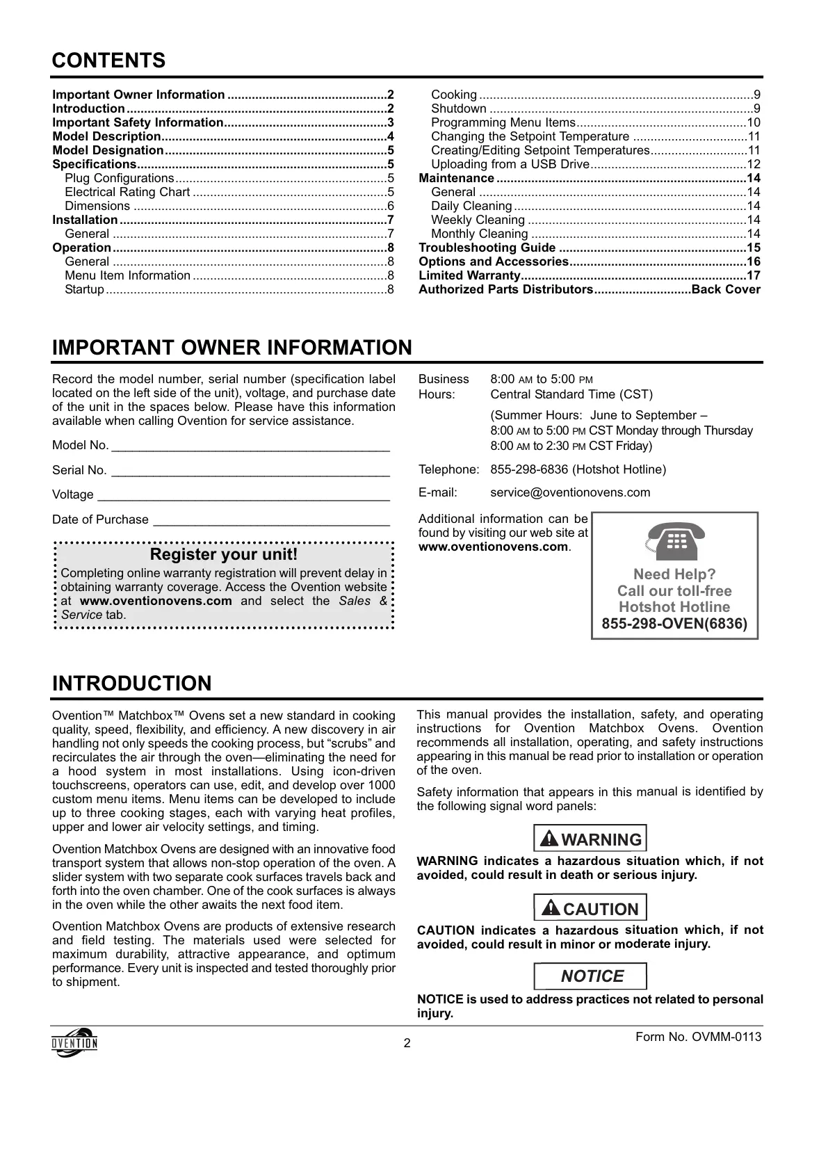 Important Owner Information ..............................................2
