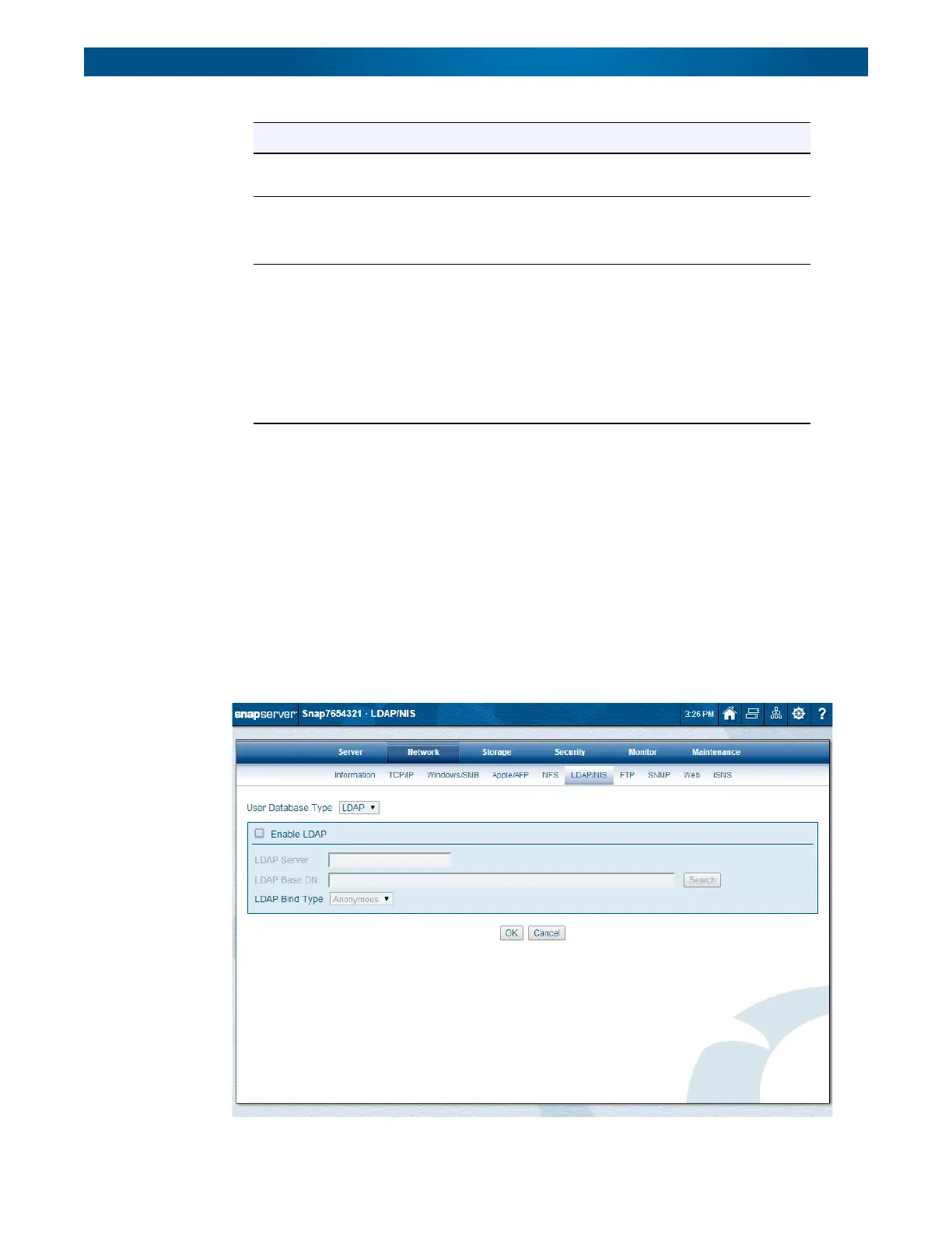 Management Interface. Use the drop-down list to choose either LDAP or NIS as the user