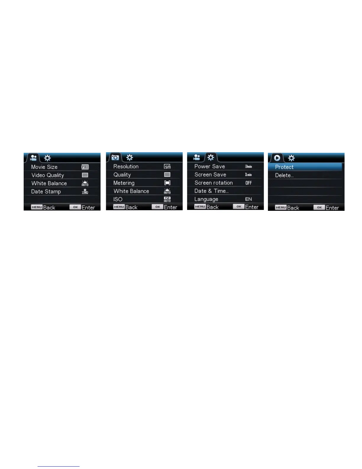 A videó módban nyomja meg a Menü gombot a videó mód beállításainak megnyitásához. Nyomja meg