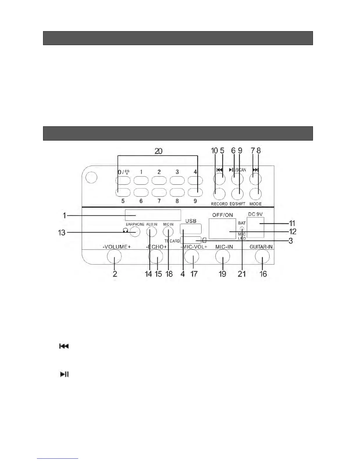 2. Hlavní hlasitost: V režimu MP3 / FM / LINE slouží k ovládání hlasitosti výstupu