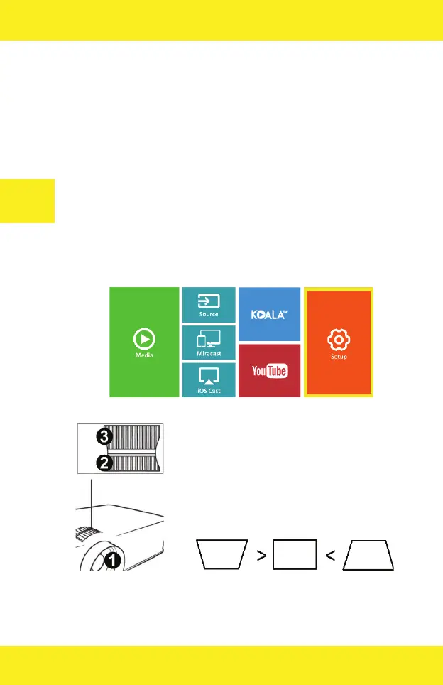 Postavite projektor tako da leća ostane u položaju okomito na zid ili ploču