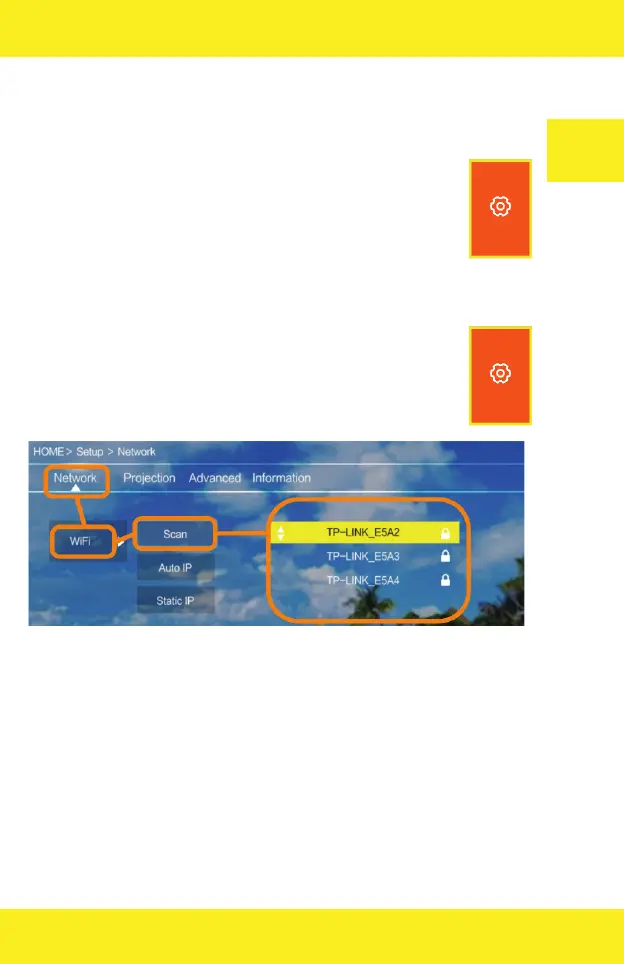 d) Select section (Scan) and confi rm your choice. The projector will scan