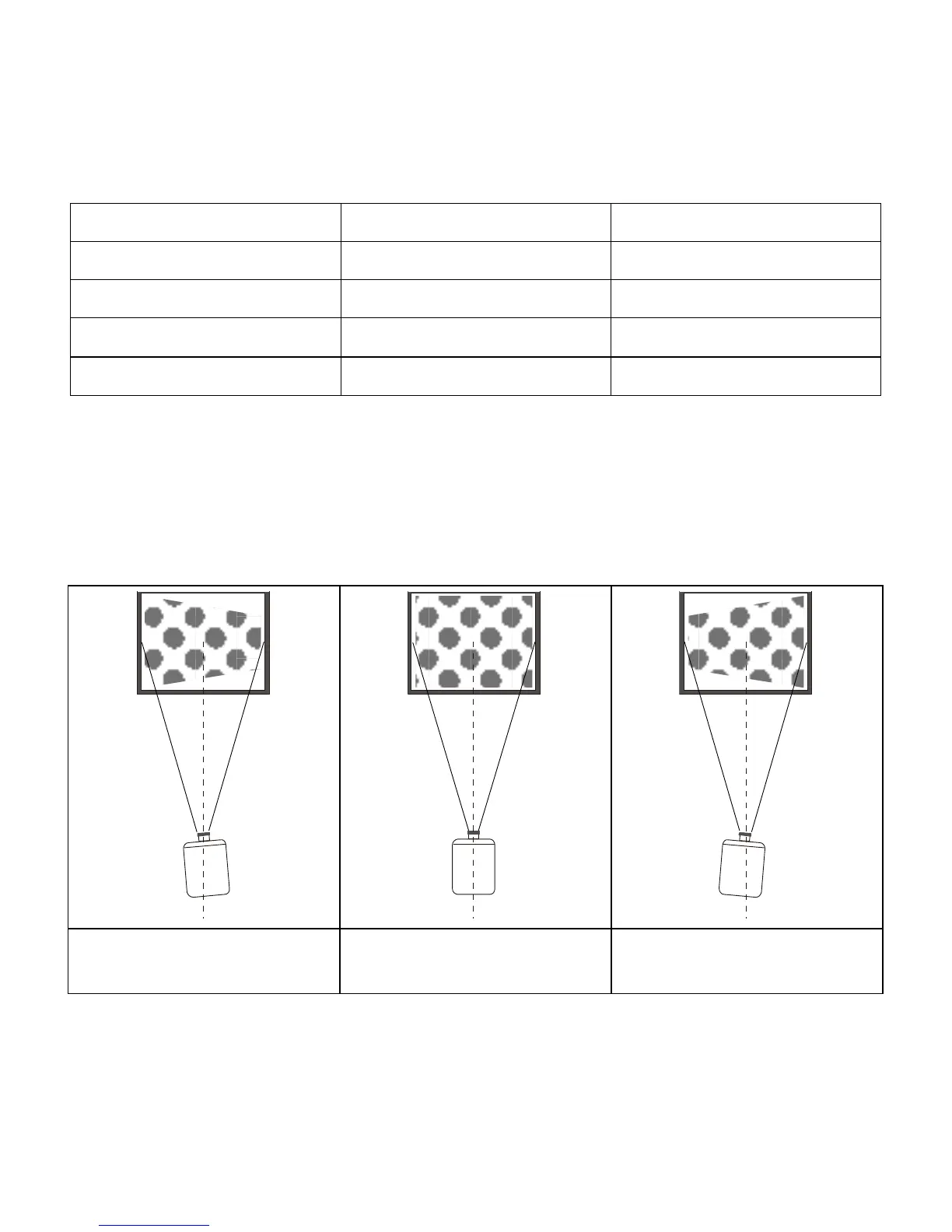 Kérjük, vegye figyelembe az alábbi táblázatot, amikor a képméretet és távolságot