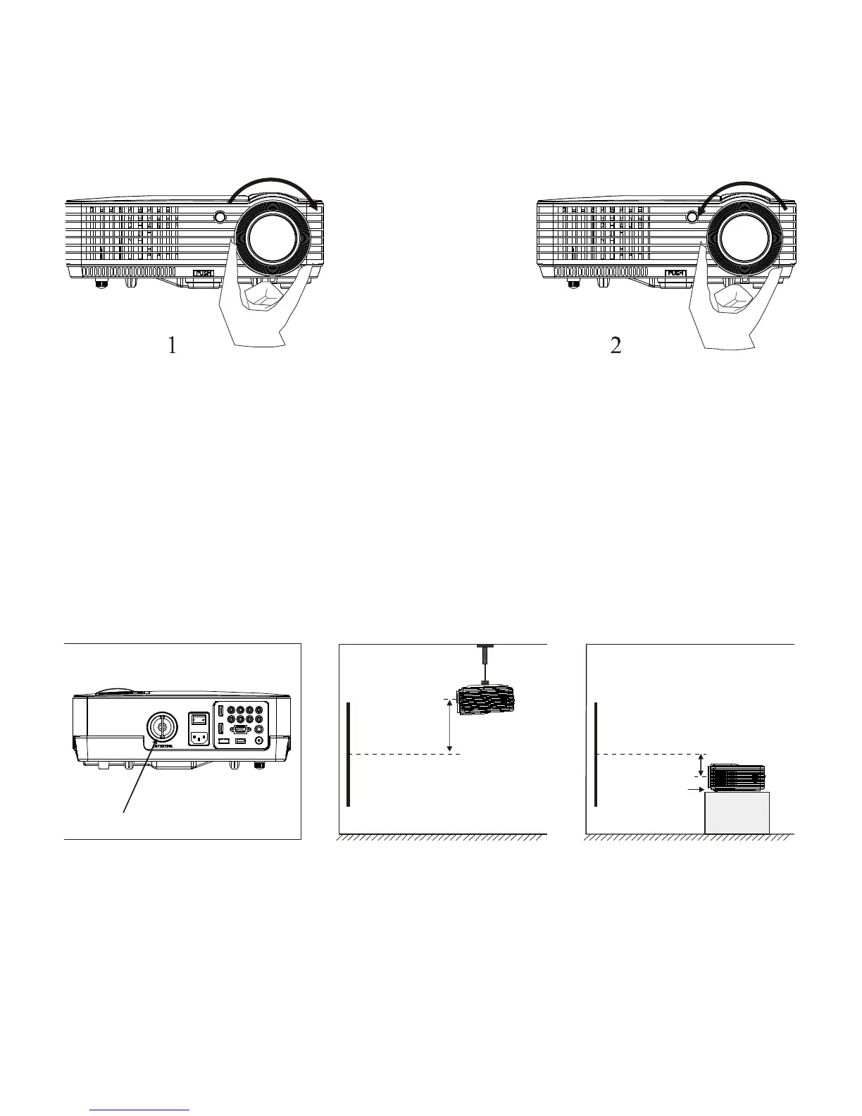 1.Turn the lens clockwise to the projector then turn it counter clockwise slowly