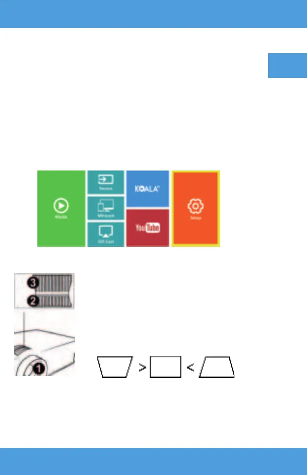 względem ściany lub tablicy, na której ma być wyświetlany obraz. Po