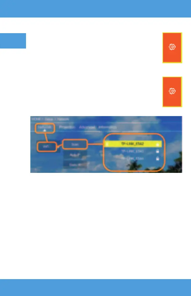 d) Zaznacz sekcję (Skanuj) i potwierdź wybór. Projektor przeskanuje dostępne