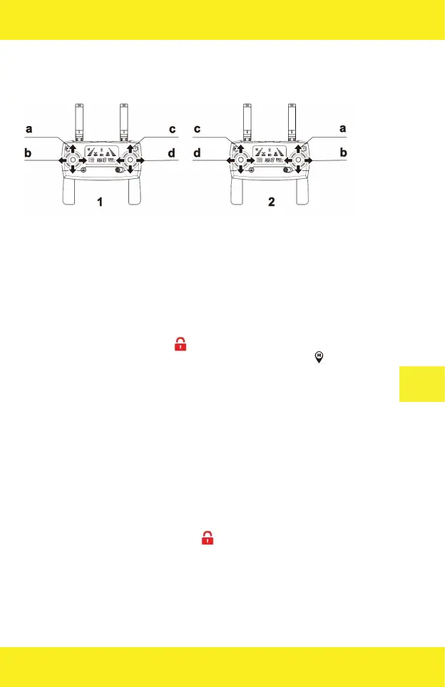 Dronas turi du valdymo režimus, kurie perjungia kairėje ir dešinėje esančių svirčių vietas. Pagal