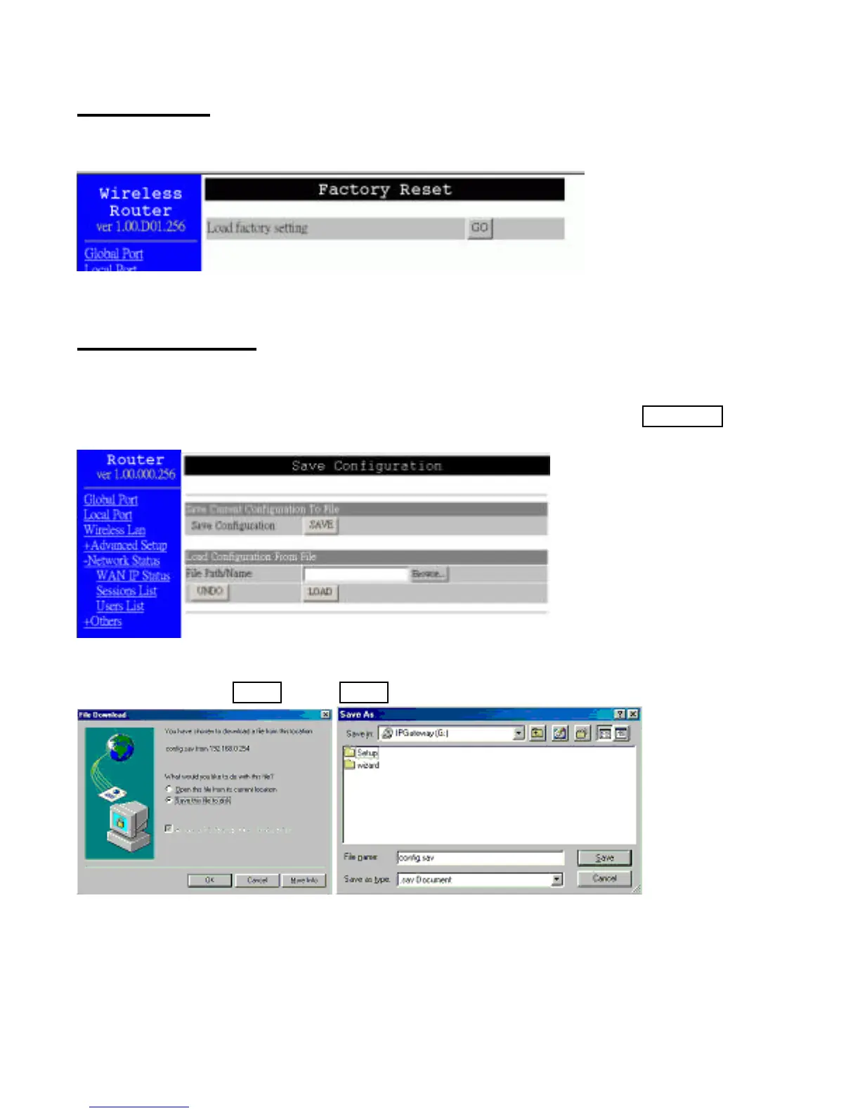 Save Configuration SAVE: Click SAVE to save the current configuration to file.