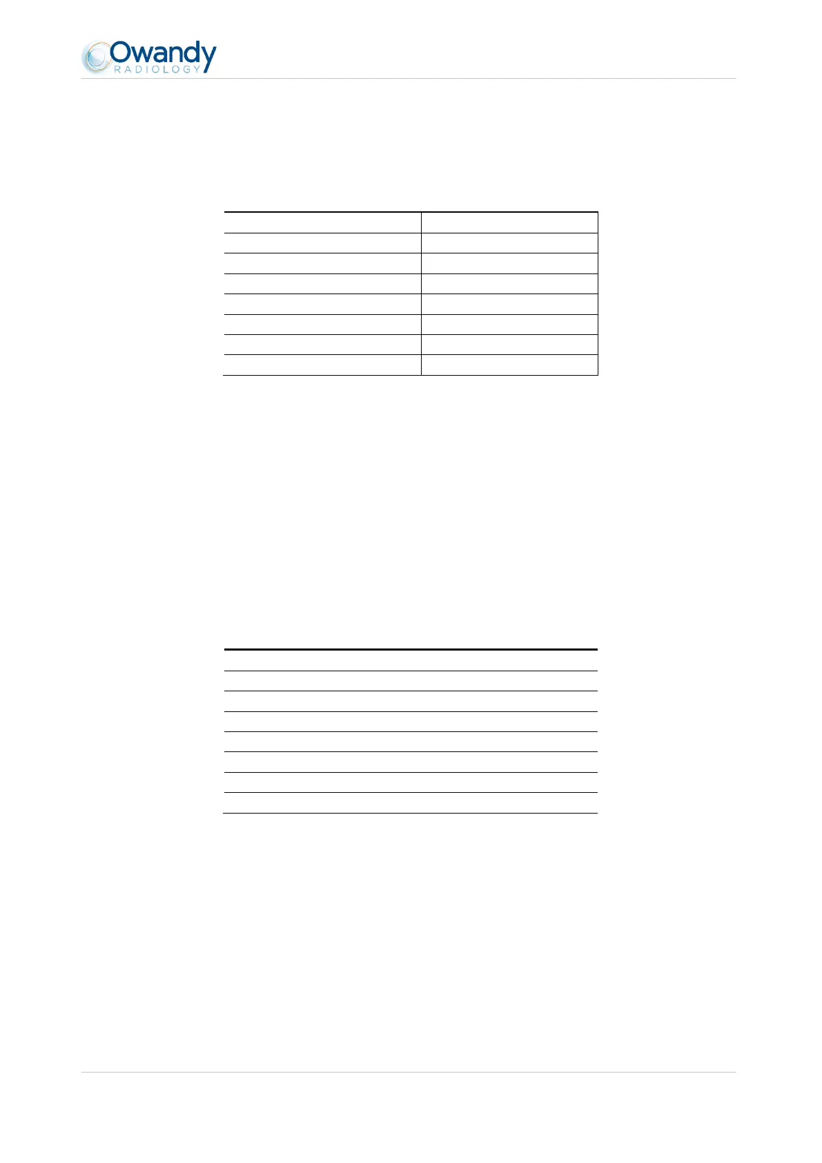 Recommended exposure times in seconds for the Owandy Radiology X-ray generators Ow-RX: