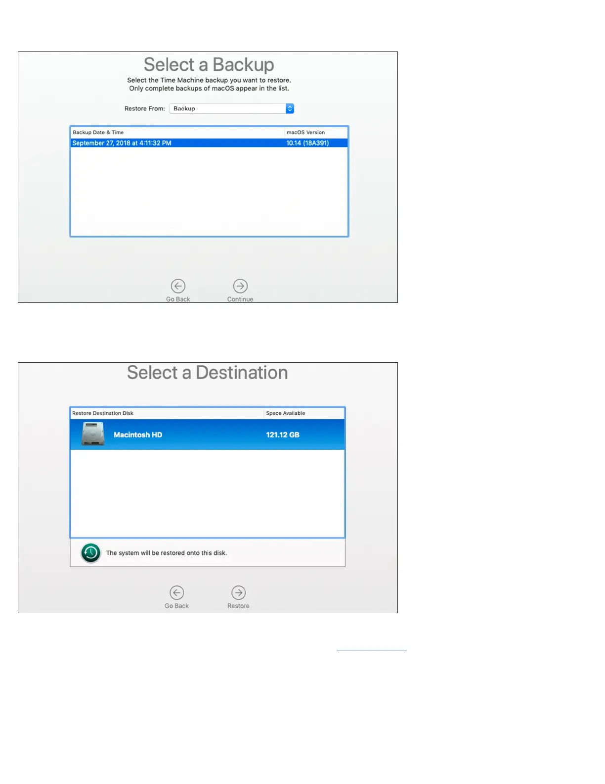 Step 4 – from the ‘Select a Destination’ window, choose the new volume you created earlier on the SSD, then click ‘Restore’. When the