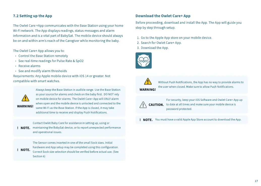 on mobile device for alarms. The Owlet Care+ App will ONLY alarm