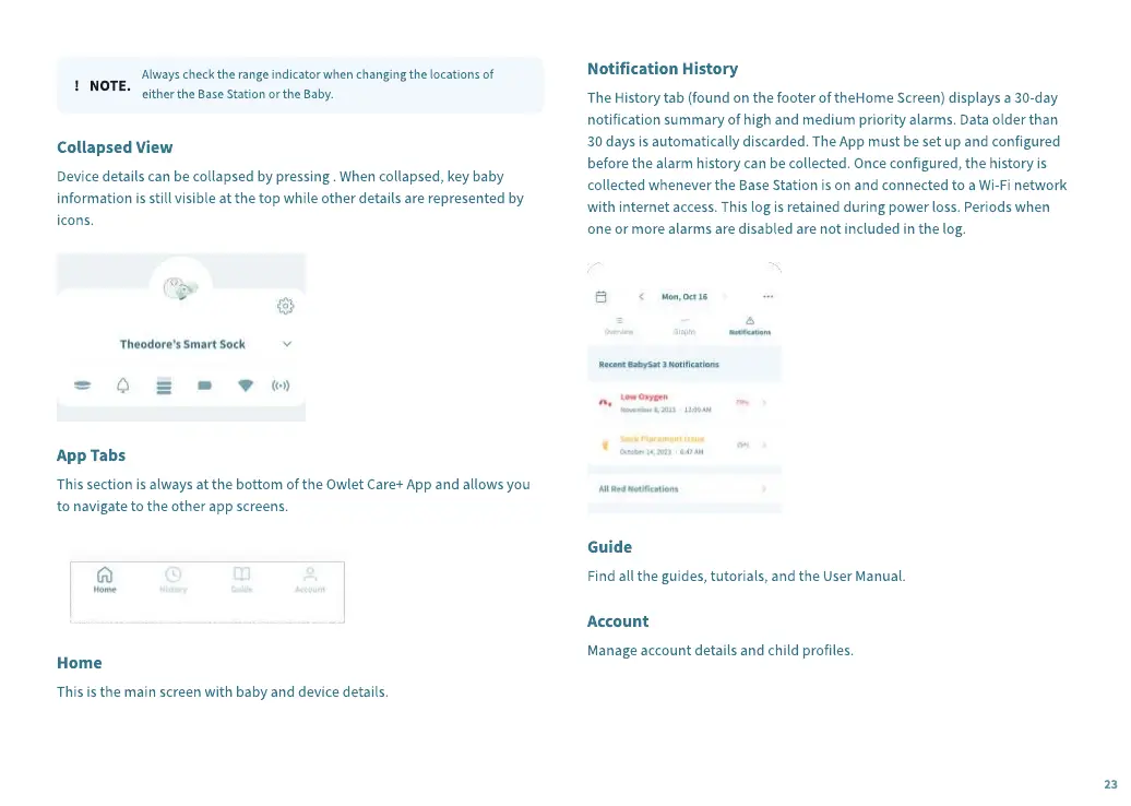 This section is always at the bottom of the Owlet Care+ App and allows you