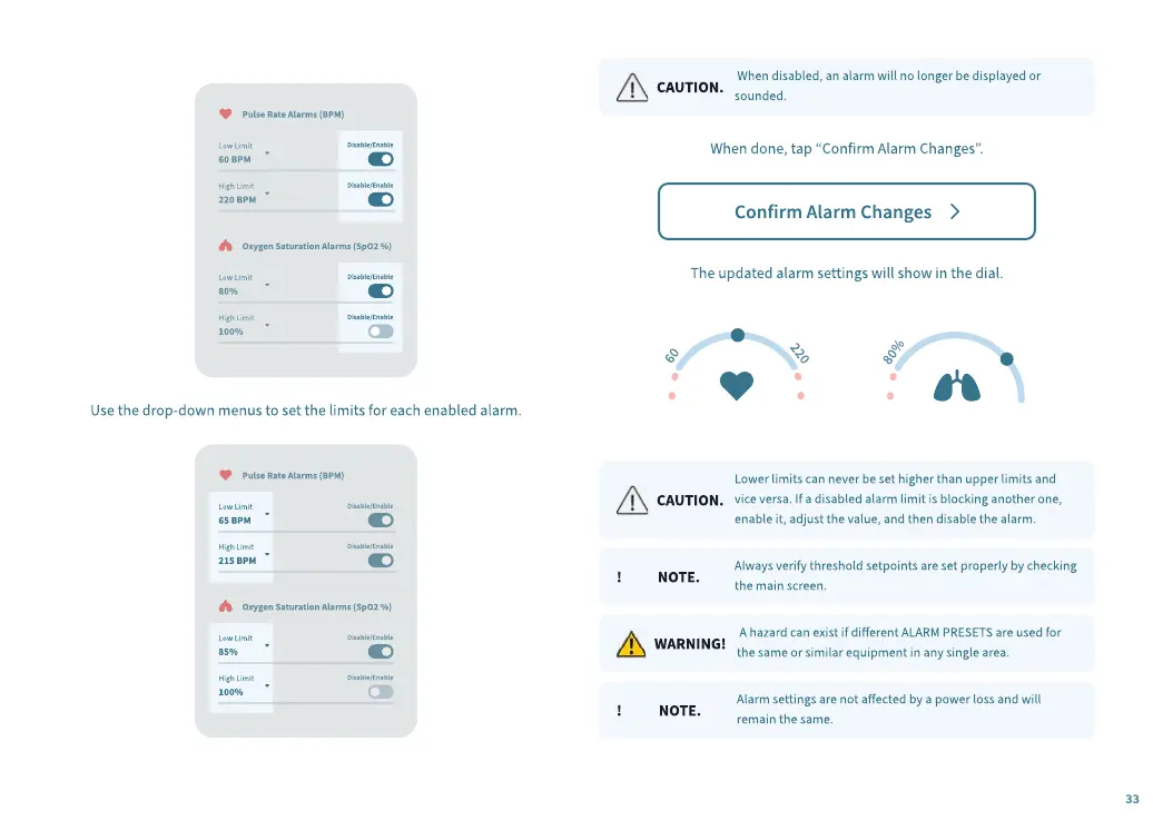 When done, tap “Confirm Alarm Changes”.