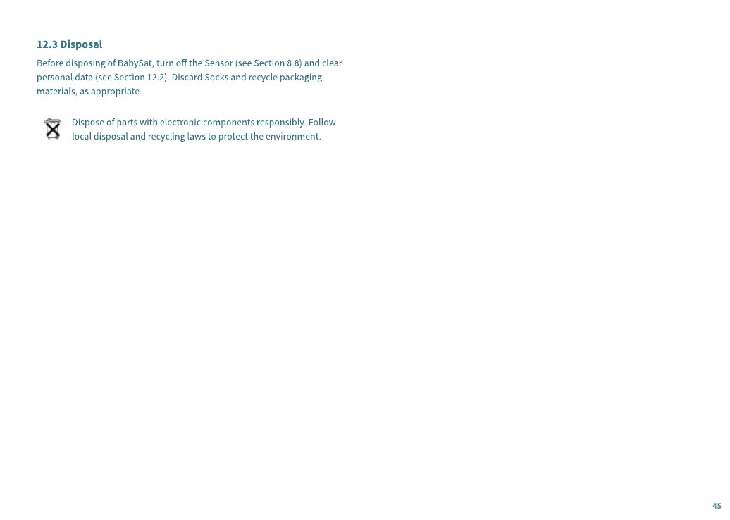 Before disposing of BabySat, turn o the Sensor (see Section 8.8) and clear