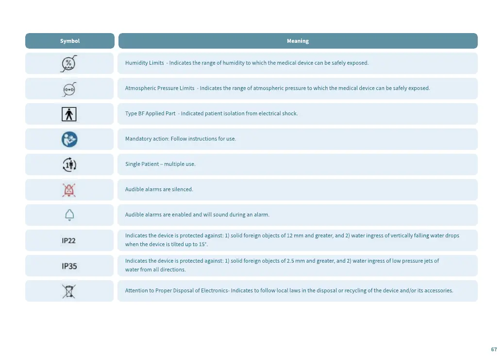 Humidity Limits - Indicates the range of humidity to which the medical device can be safely exposed.