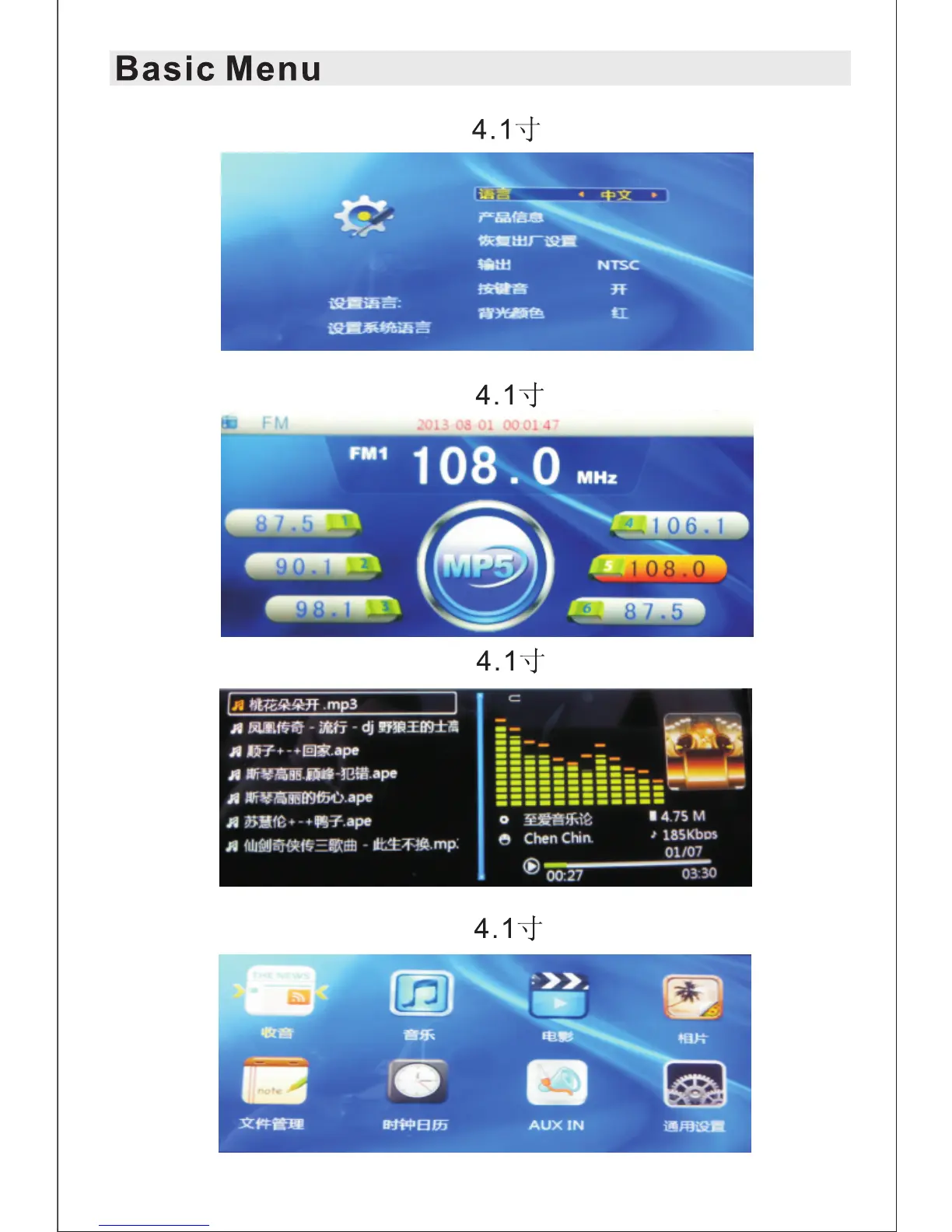 Ownice C500-E - Player Basic Menu Navigation; System Settings Configuration; FM Radio Interface; Audio Playback Interface