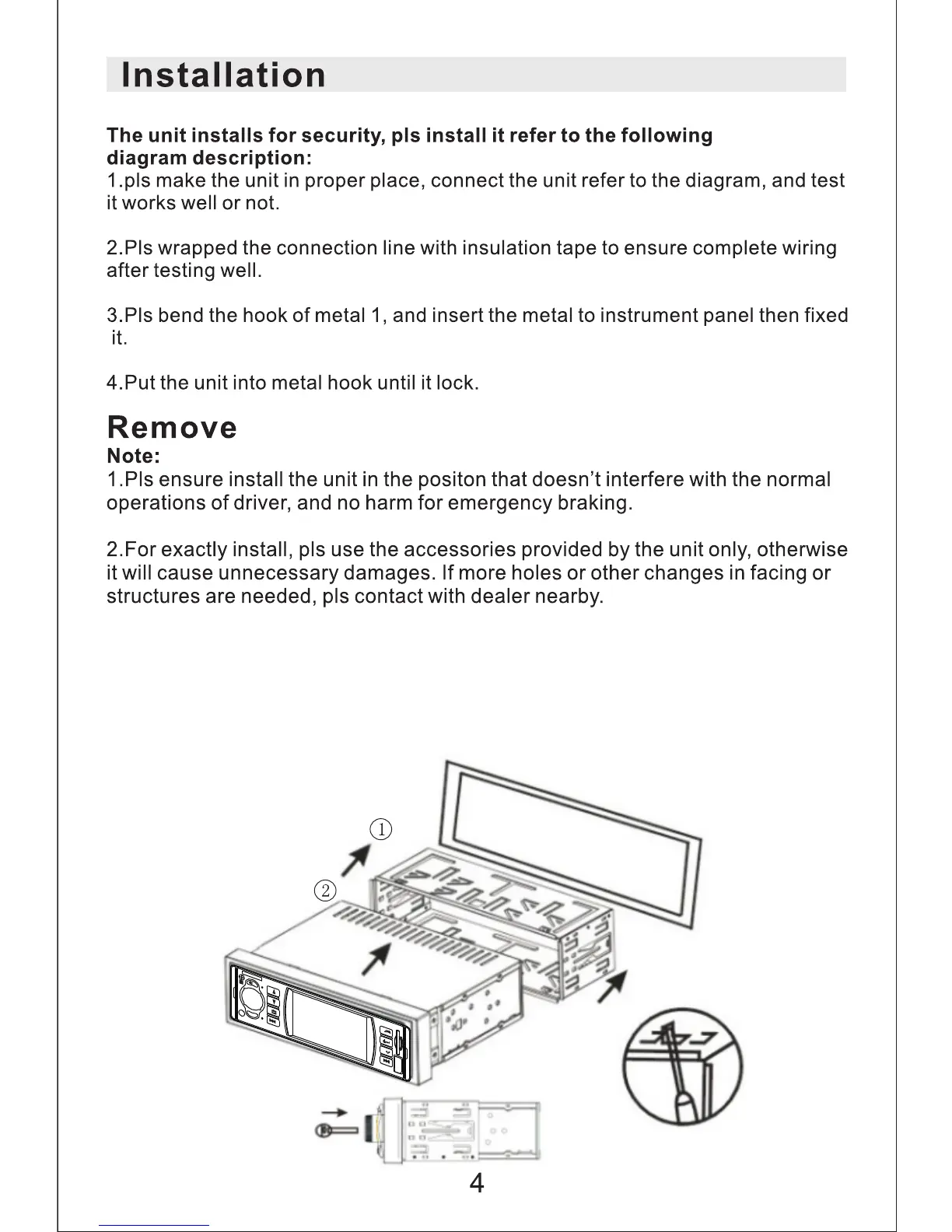 Ownice C500-E - Device Installation Guide; Unit Removal Procedure; Unit Dismantling and Service