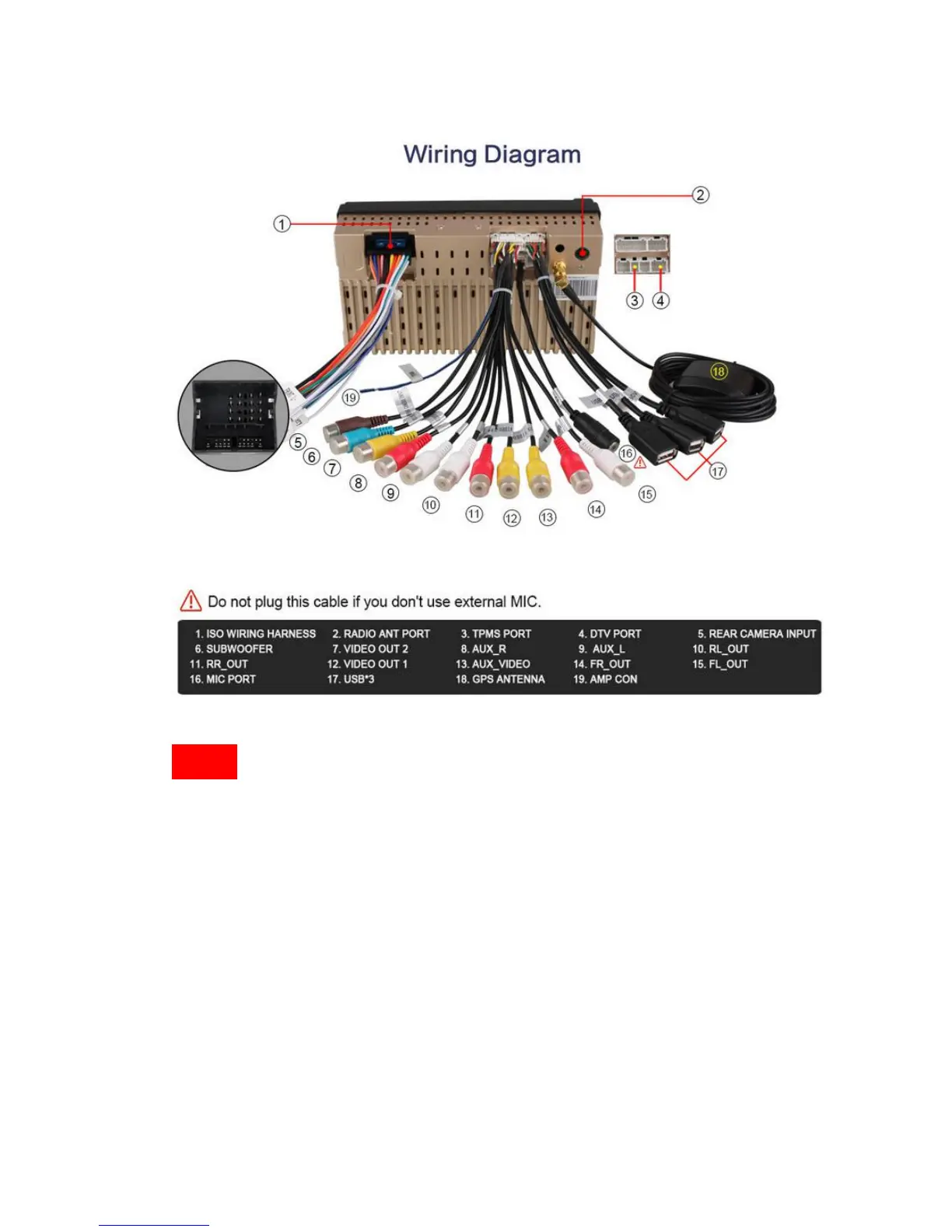 Ownice K1 - Product Diagram and Wiring; Wiring Diagram Overview; MIC Connection Notes