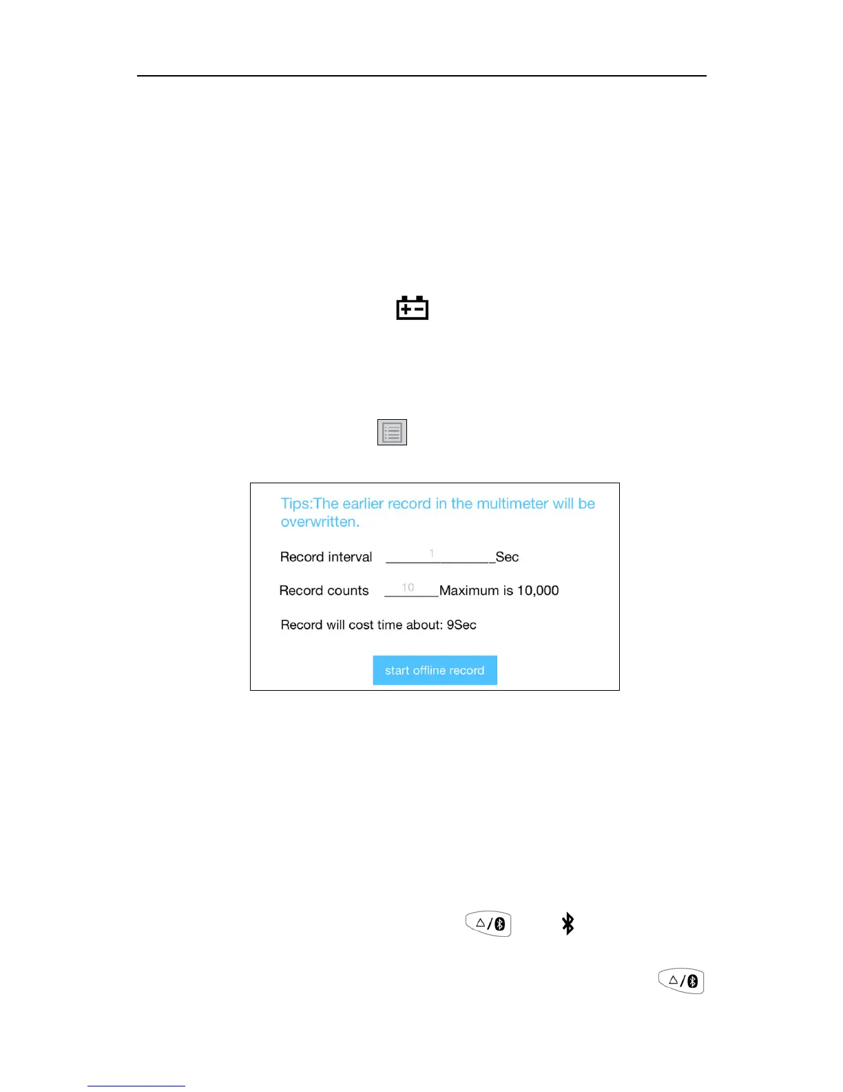 multimeter will be overwritten. After completion of the record, the Bluetooth of the