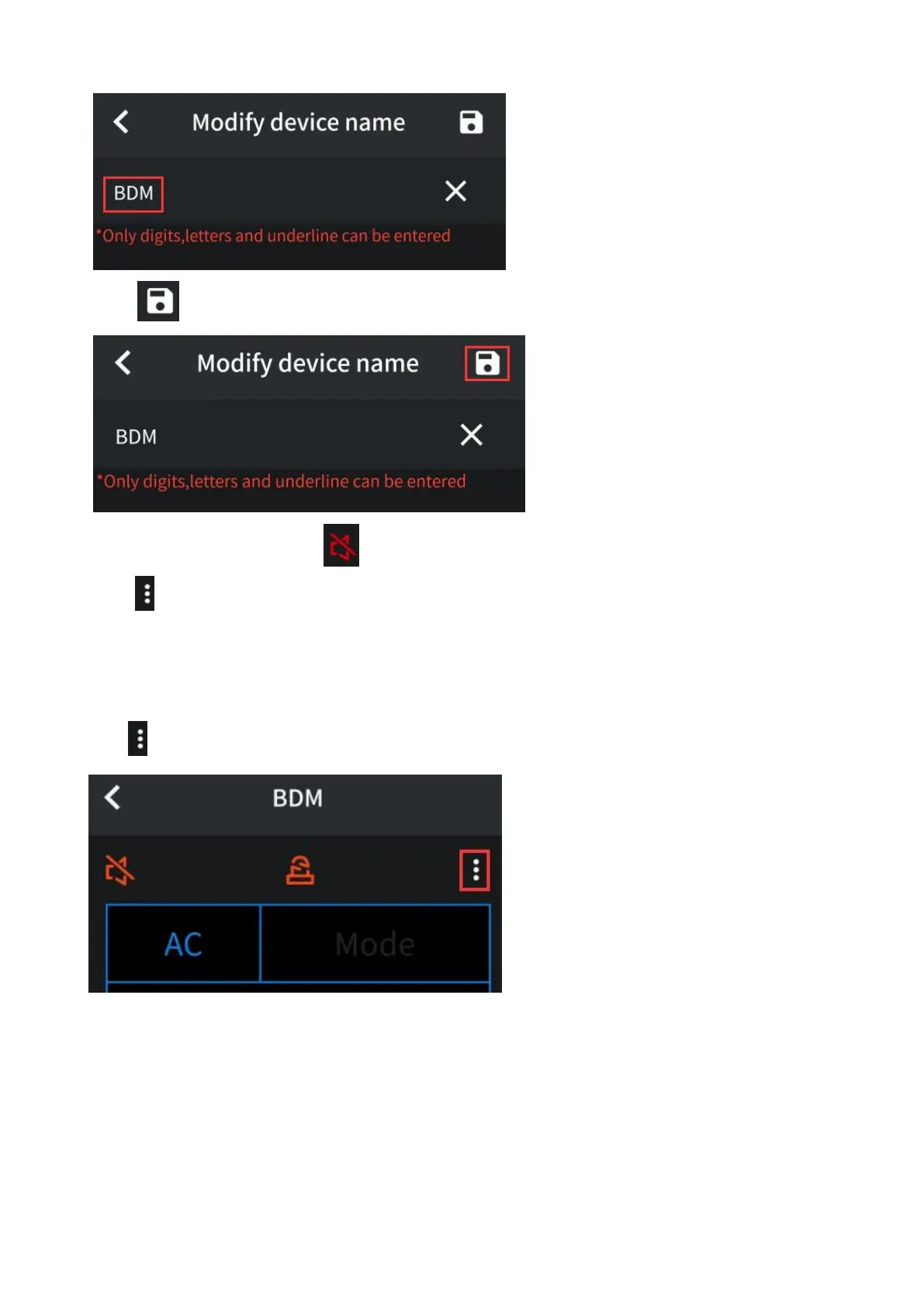 5. Click icon in the upper right corner of the interface to save the device name modified.