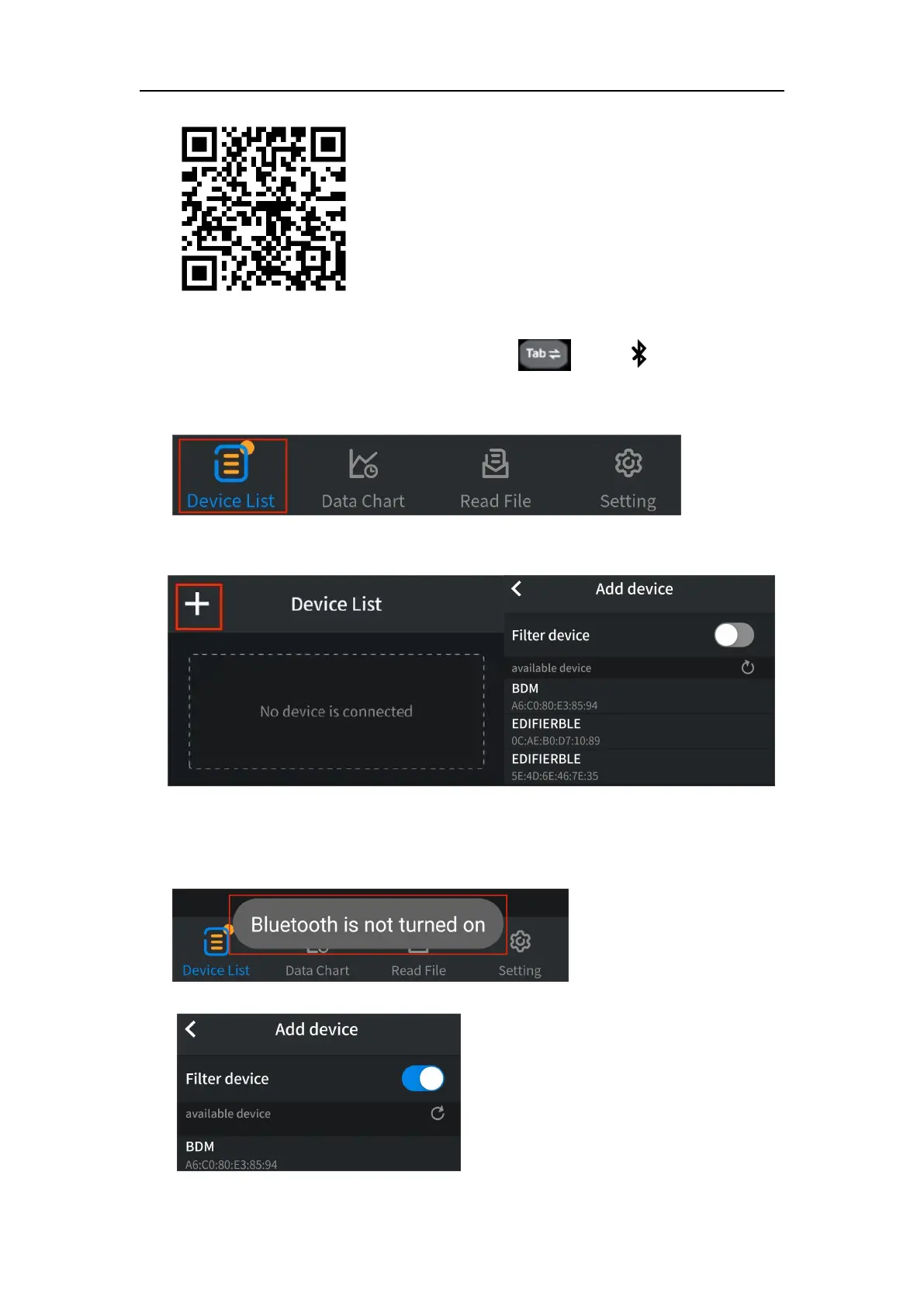(6) If the Bluetooth of the mobile device is not enabled, a prompt box will pop
