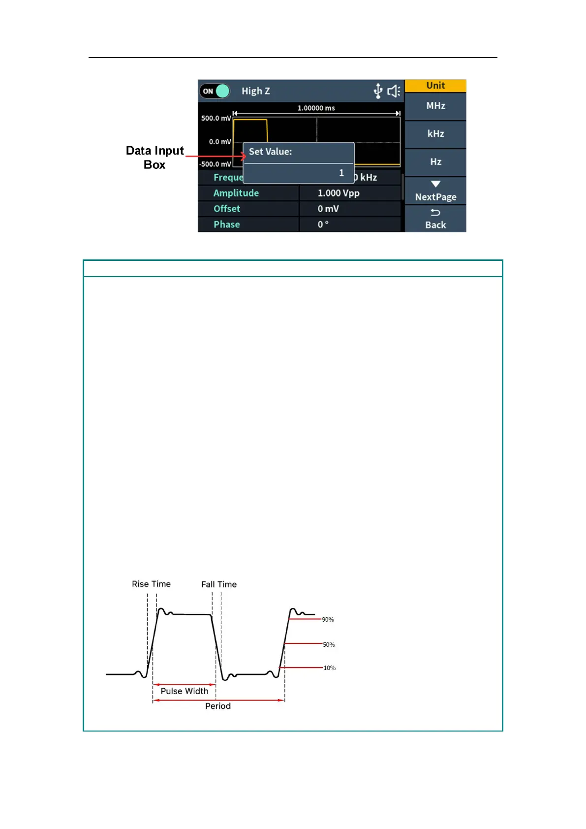 The settable range of pulse width is limited by the "minimum pulse width" and