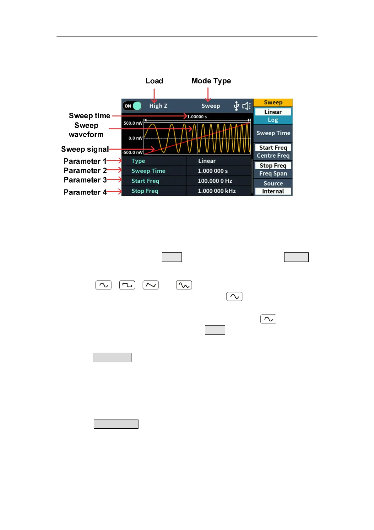 (4) Press Sweep Time softkey to set the sweep time, the time span of the