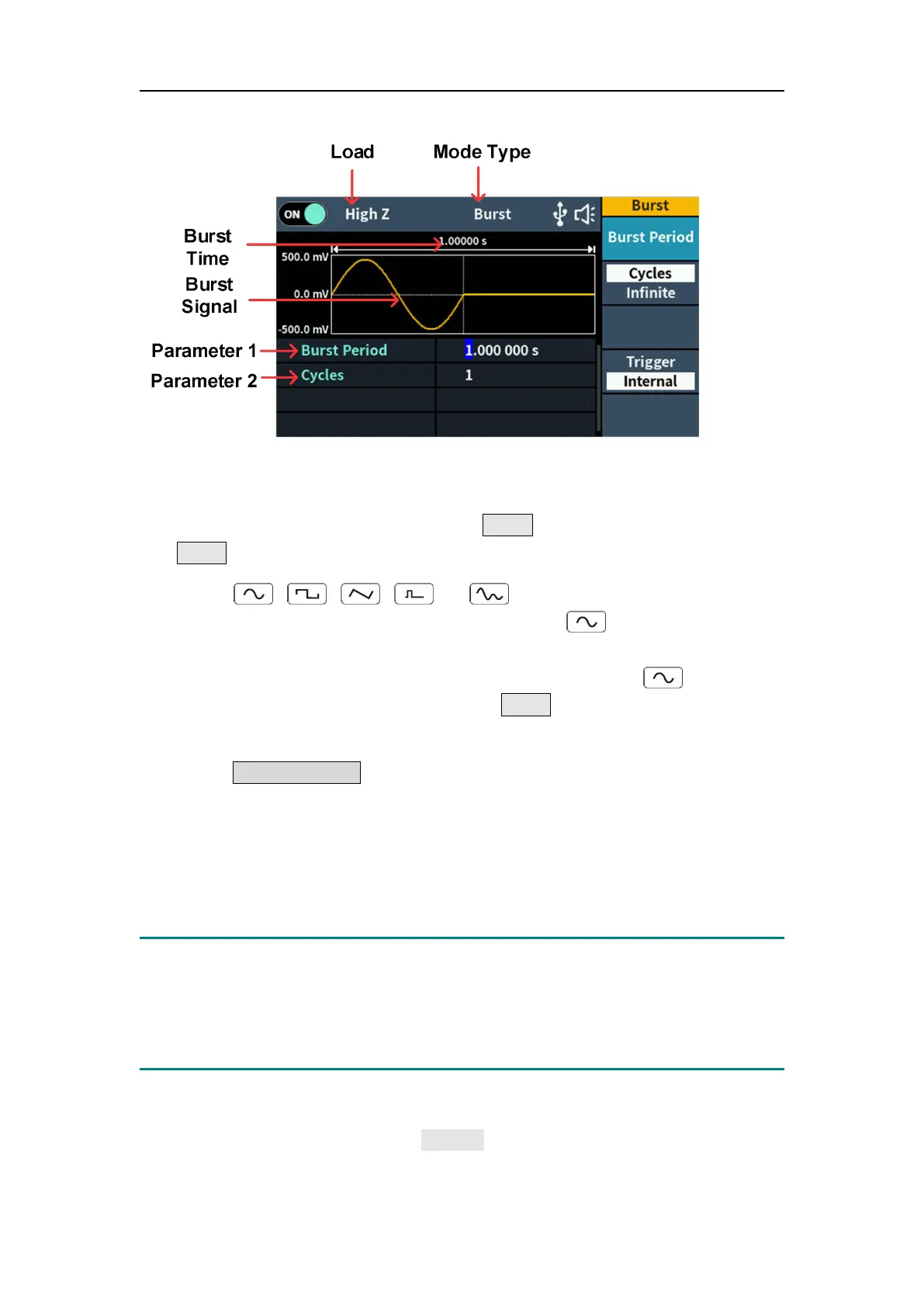 example, when selecting a sine wave, press to display the burst