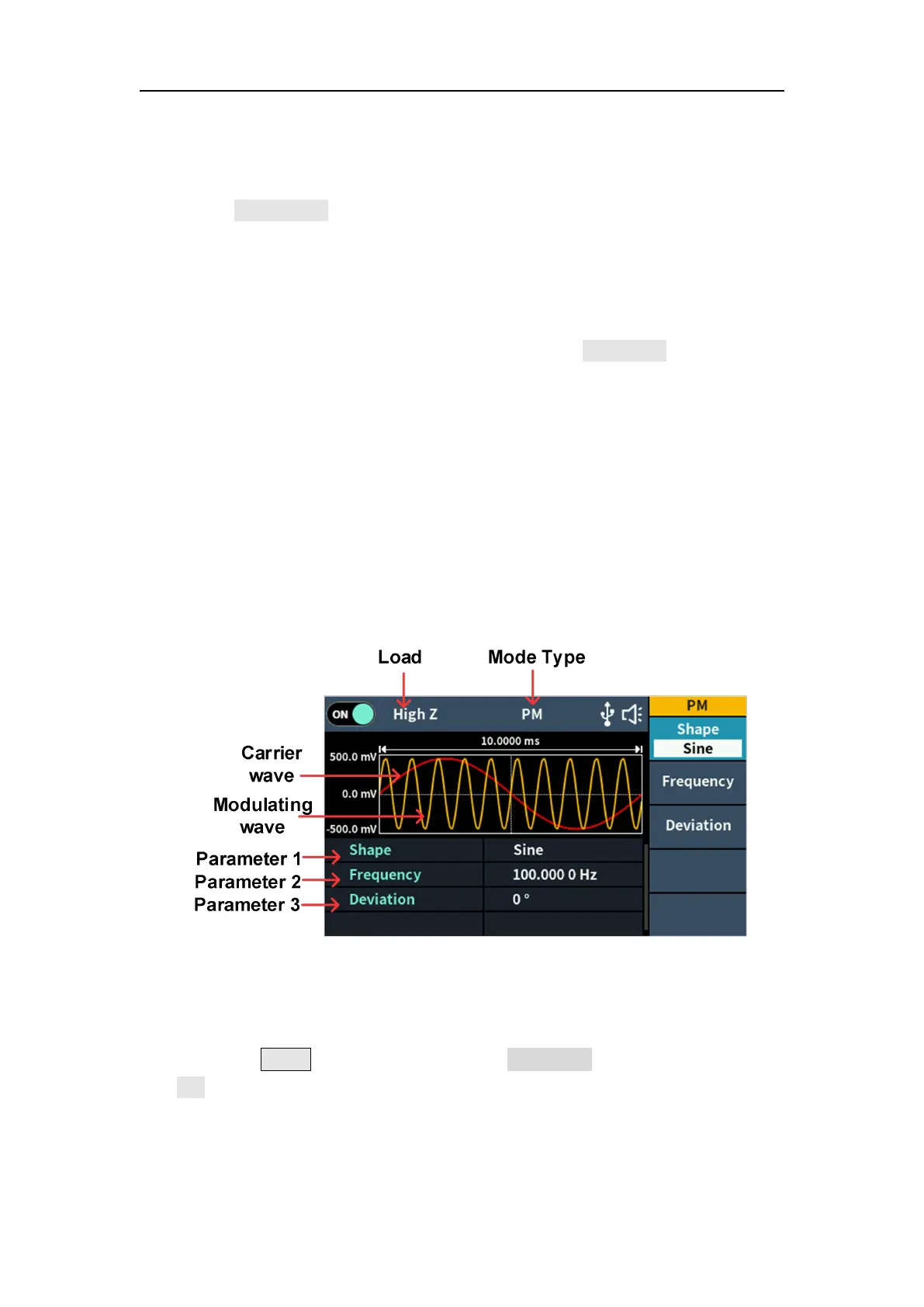 voltage of the modulating wave. The PM user interface is shown below.