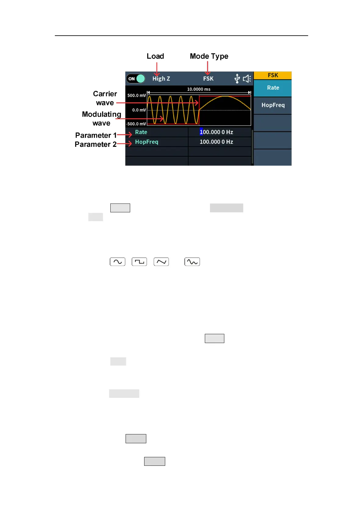 (4) Press the Rate softkey to set the FSK rate. The rate at which the output