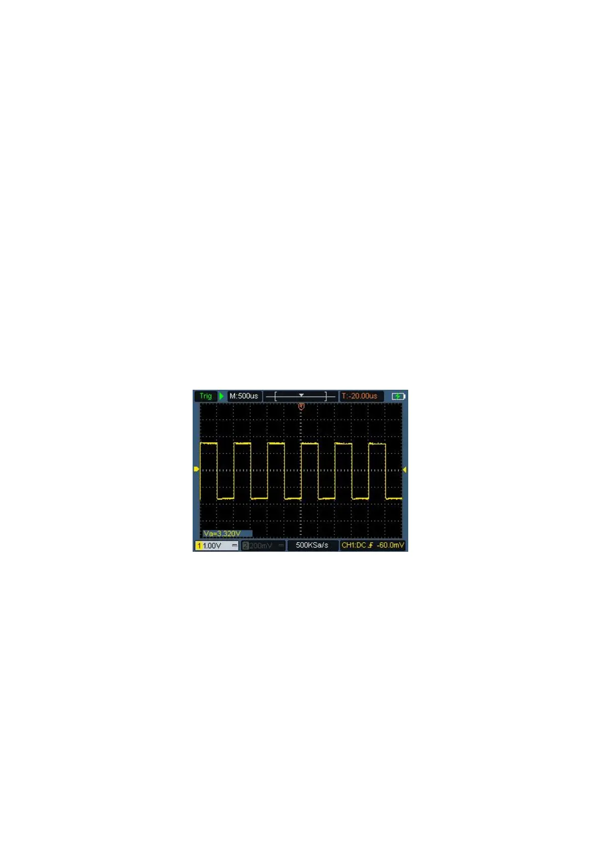 Within a few seconds, a square wave display (1kHz/3.3Vpp) can be seen, as
