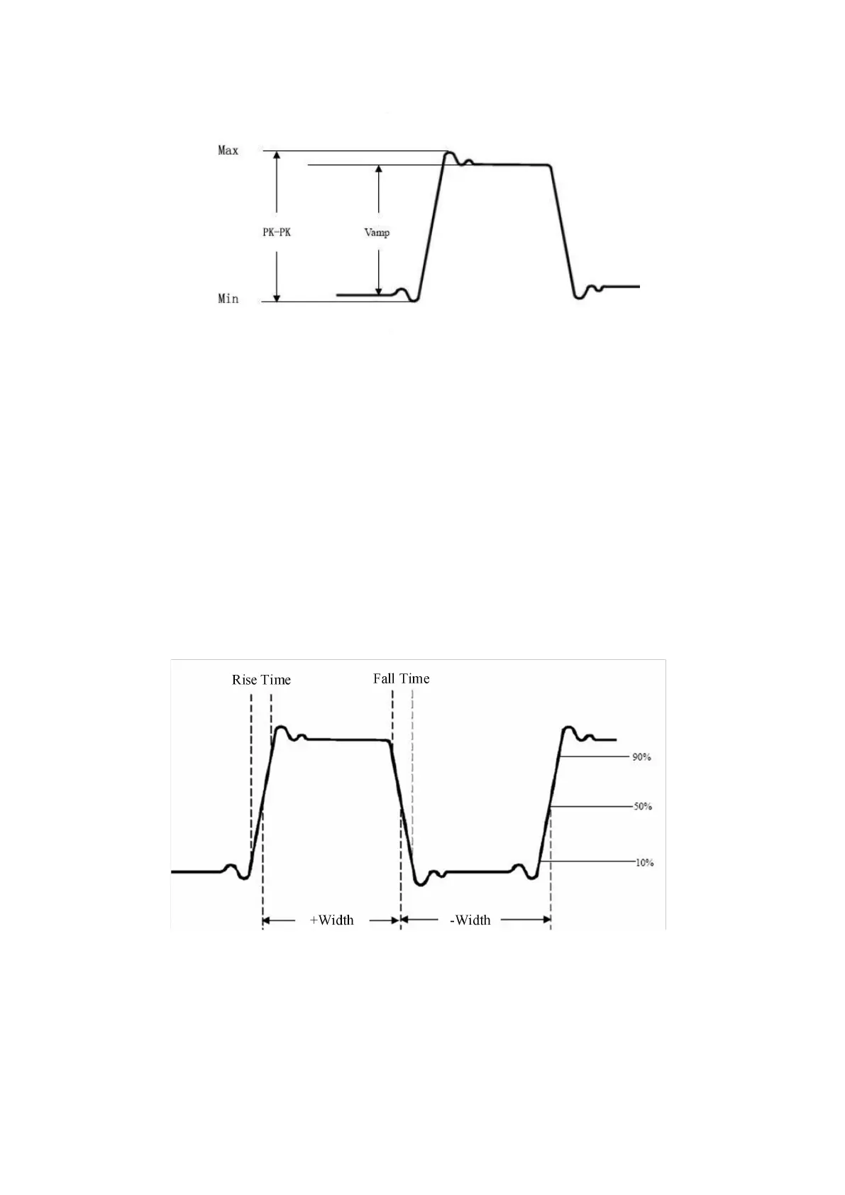 Fall Time: Time that the falling edge of the first pulse in the waveform