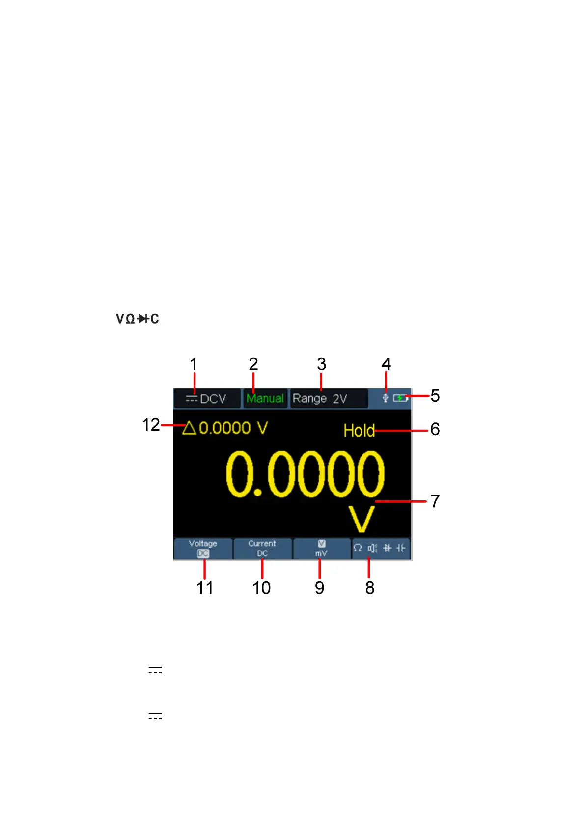 The multimeter uses four 4-mm safety banana plug input ends: A, mA, COM,
