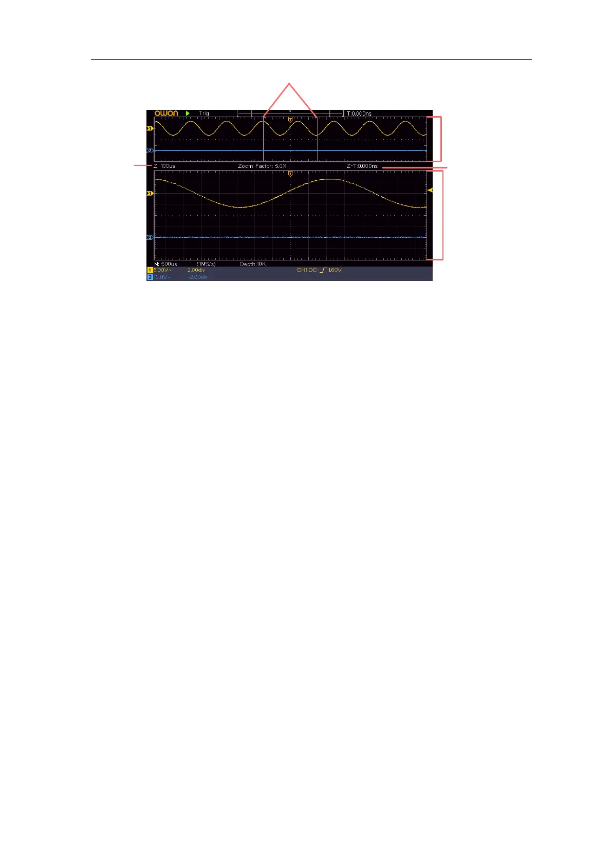 Single trigger: Use a trigger level to capture stable waveforms in two channels