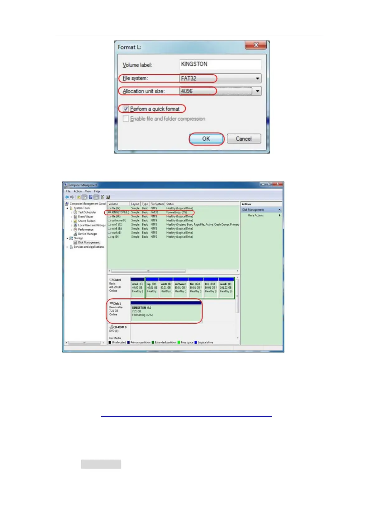 7. Check whether the USB disk is FAT32 with allocation unit size 4096 after formatting.