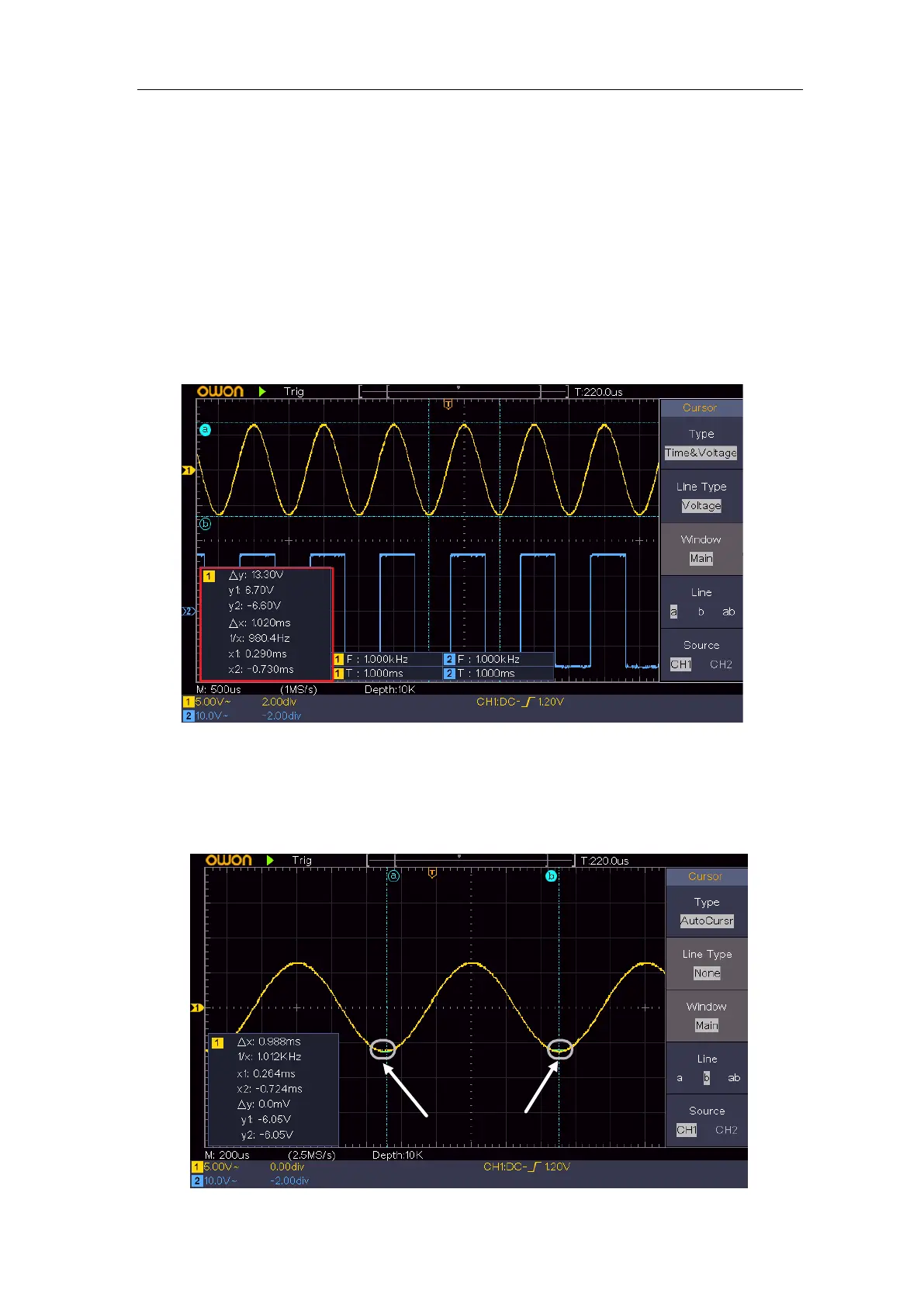 Figure 4-15 Time&Voltage Cursor Measurement