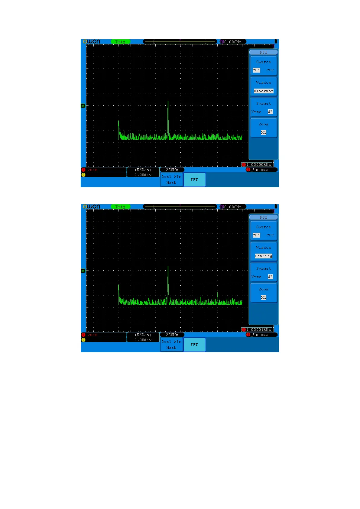 Use Zoom function to magnify the FFT waveform if necessary.
