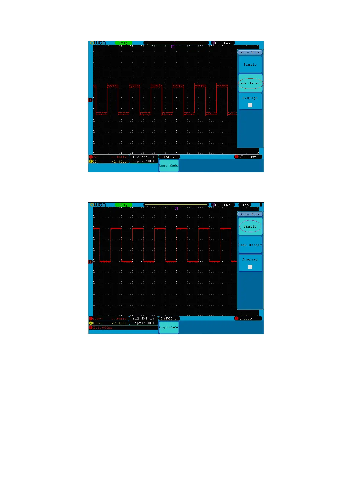 Figure 5-27 Peak Detect mode, under which the burrs on the falling edge of the