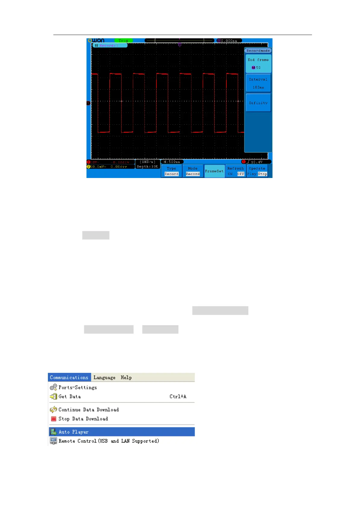 Open the software, and do as follows to play back the waveform.