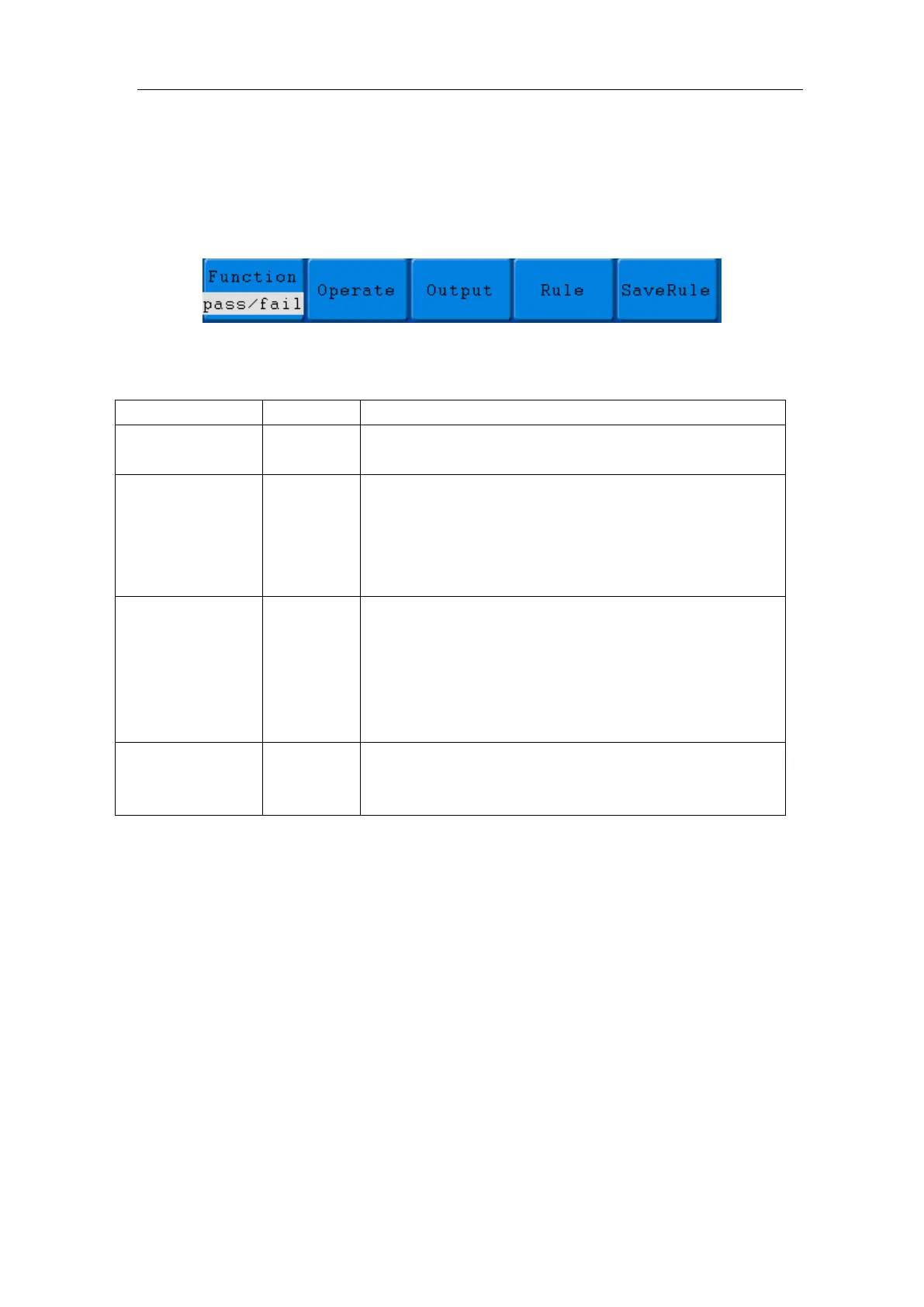 The description of Pass/Fail Menu is shown as the follows: