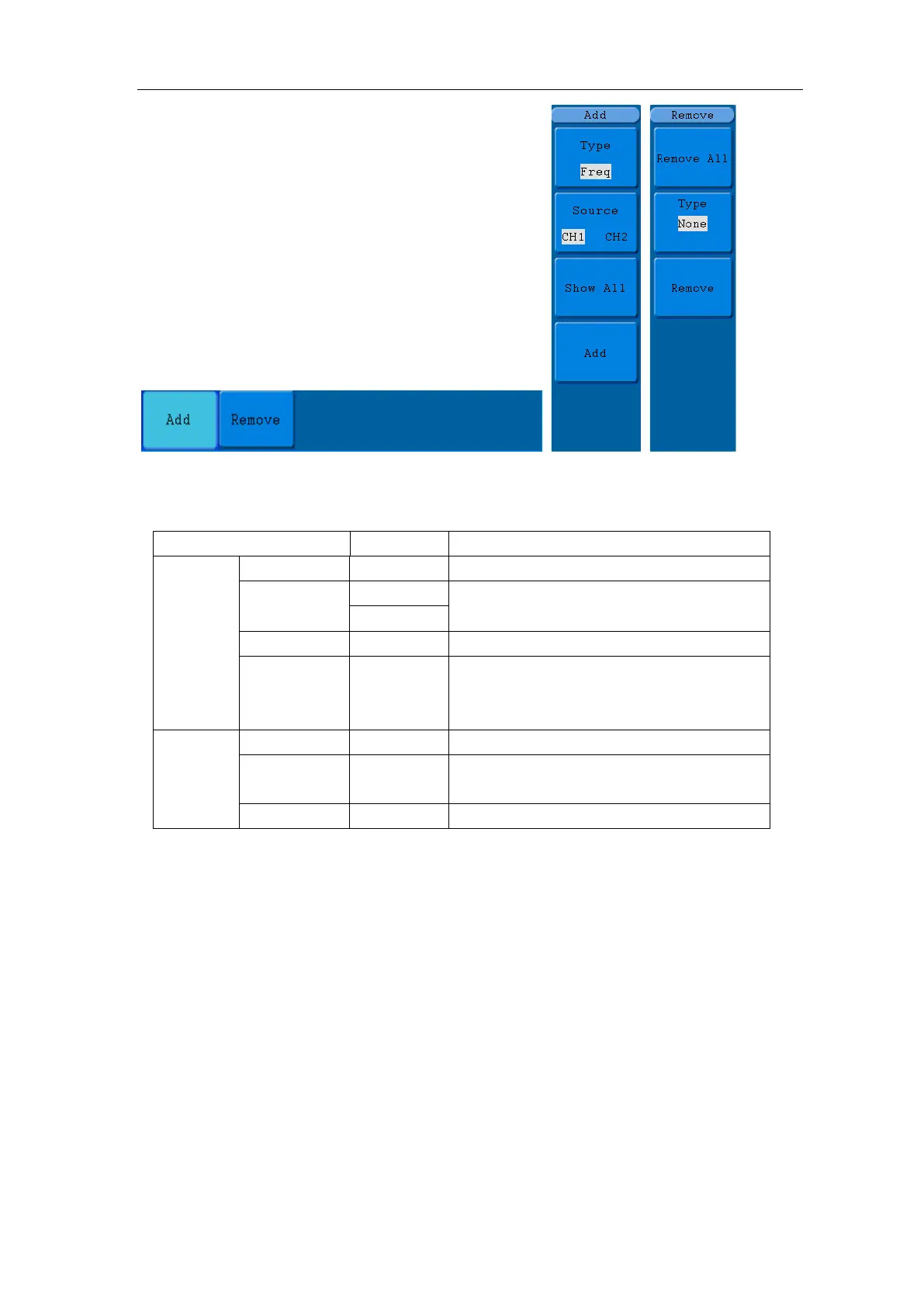 The "Automatic Measurements" menu is described as the following table: