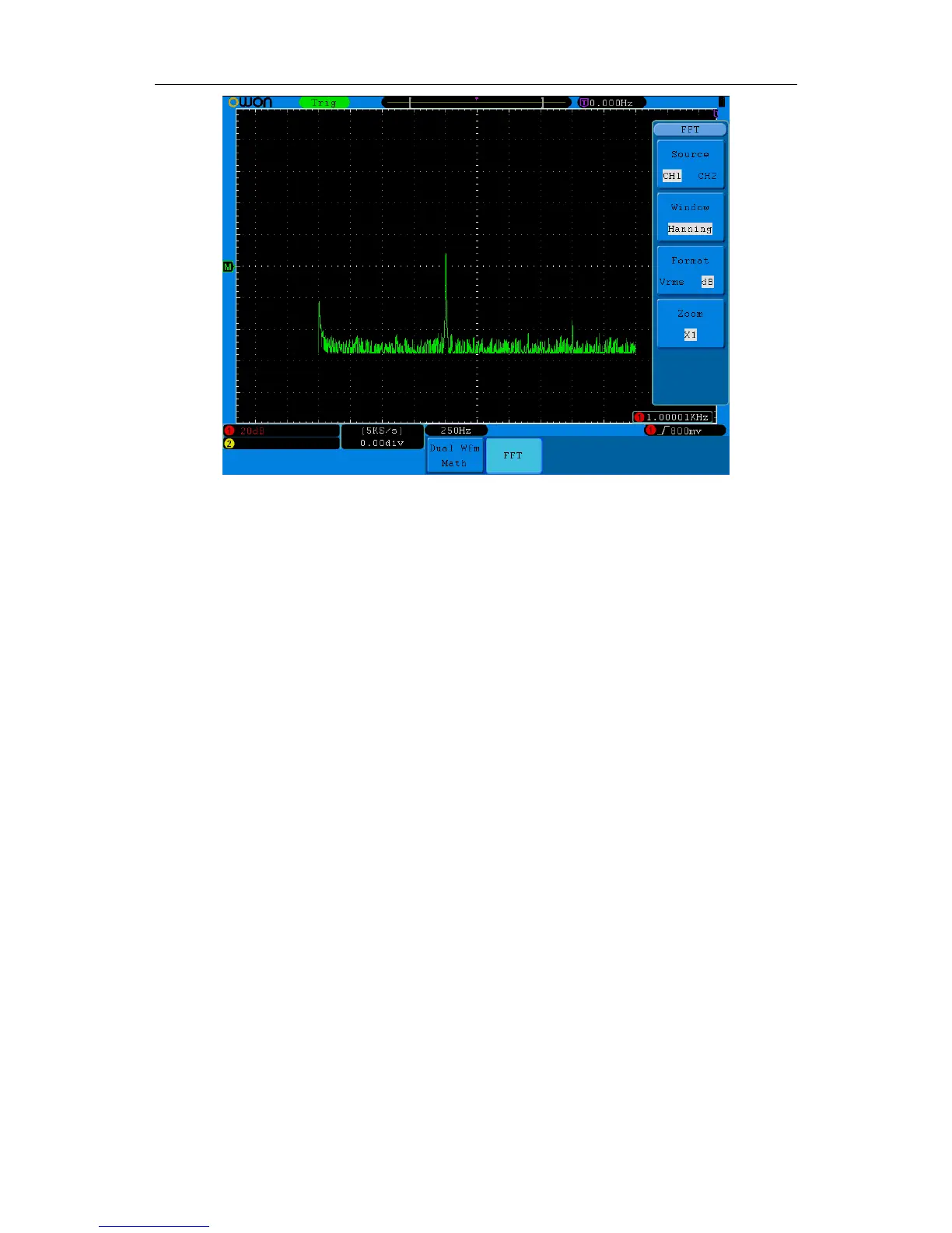 If desired, use the zoom feature to magnify the FFT waveform.