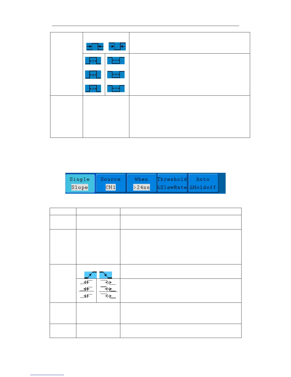 Slope trigger sets the oscilloscope as the positive/negative slope trigger within the