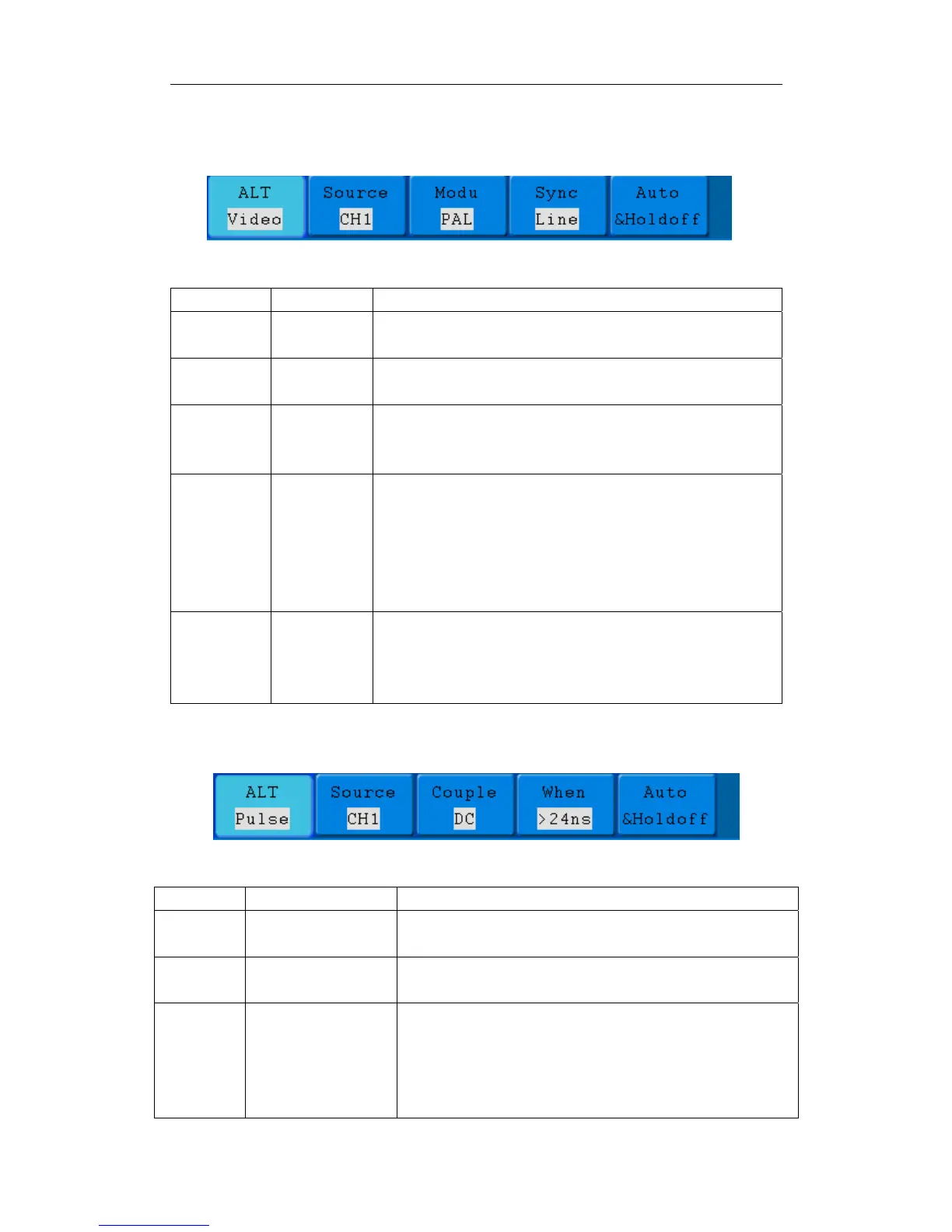 Alternate trigger (Trigger Type: Pulse) Menu is shown as Fig.5-23.