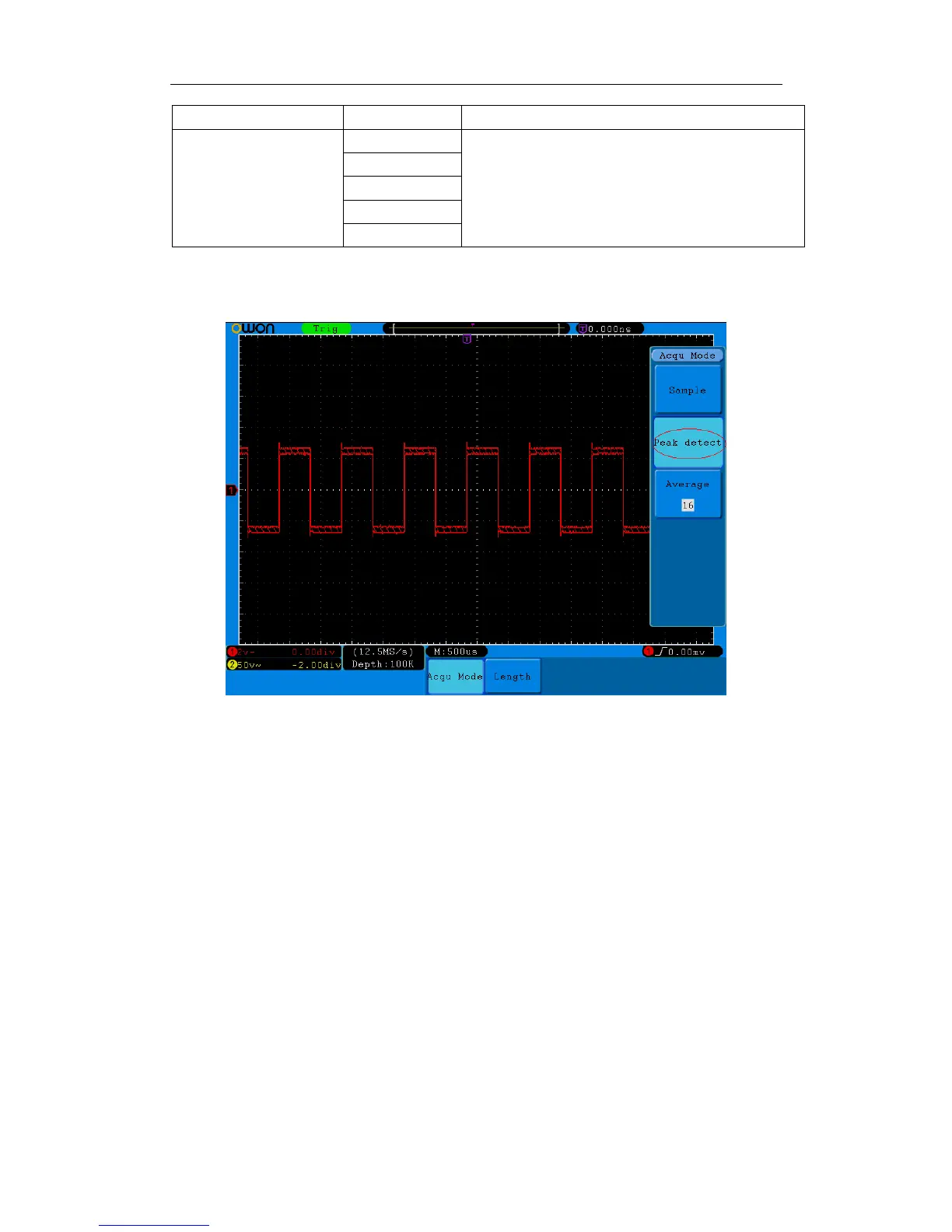 Fig.5-26 Peak Detect mode, under which the burrs on the falling edge of the square