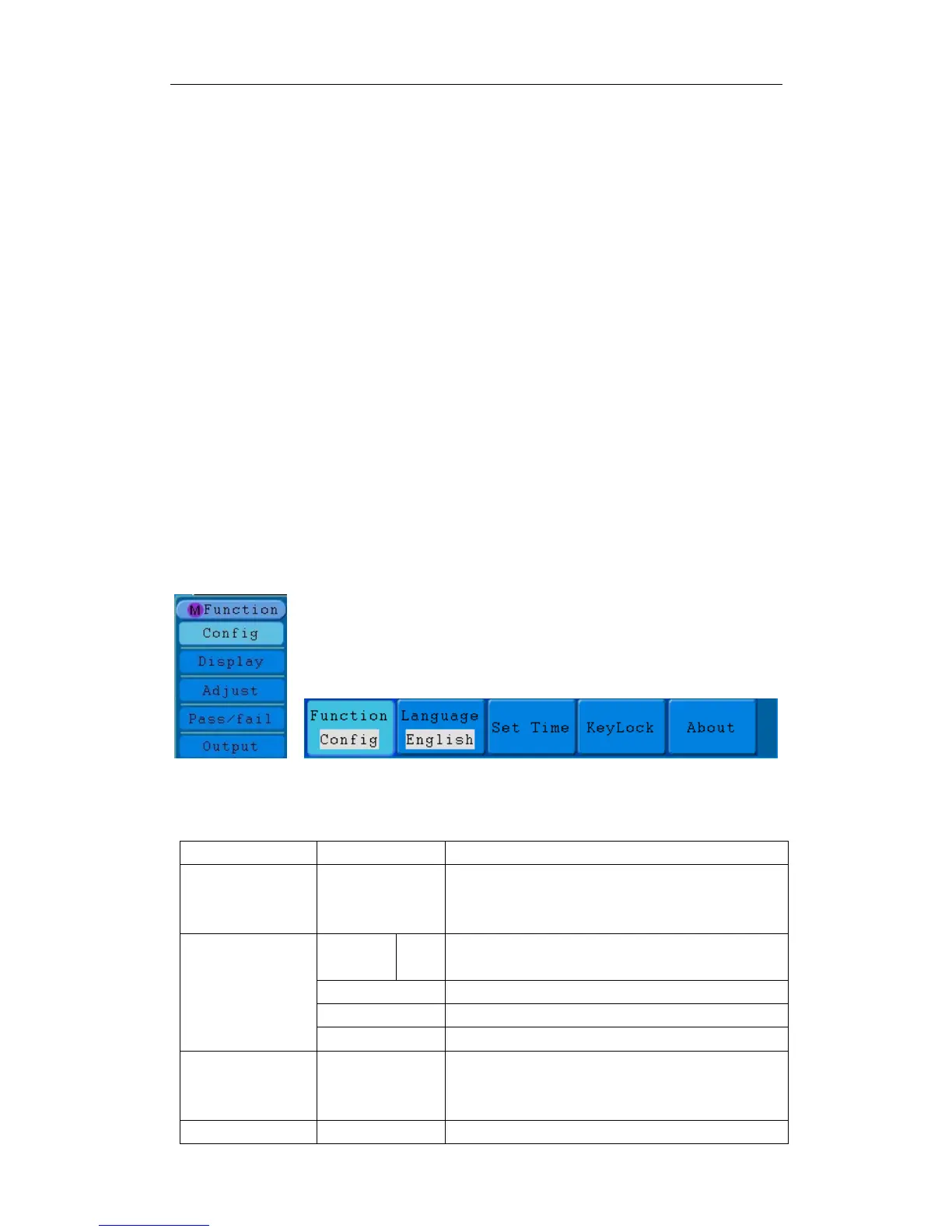 Function Menu Setting Description