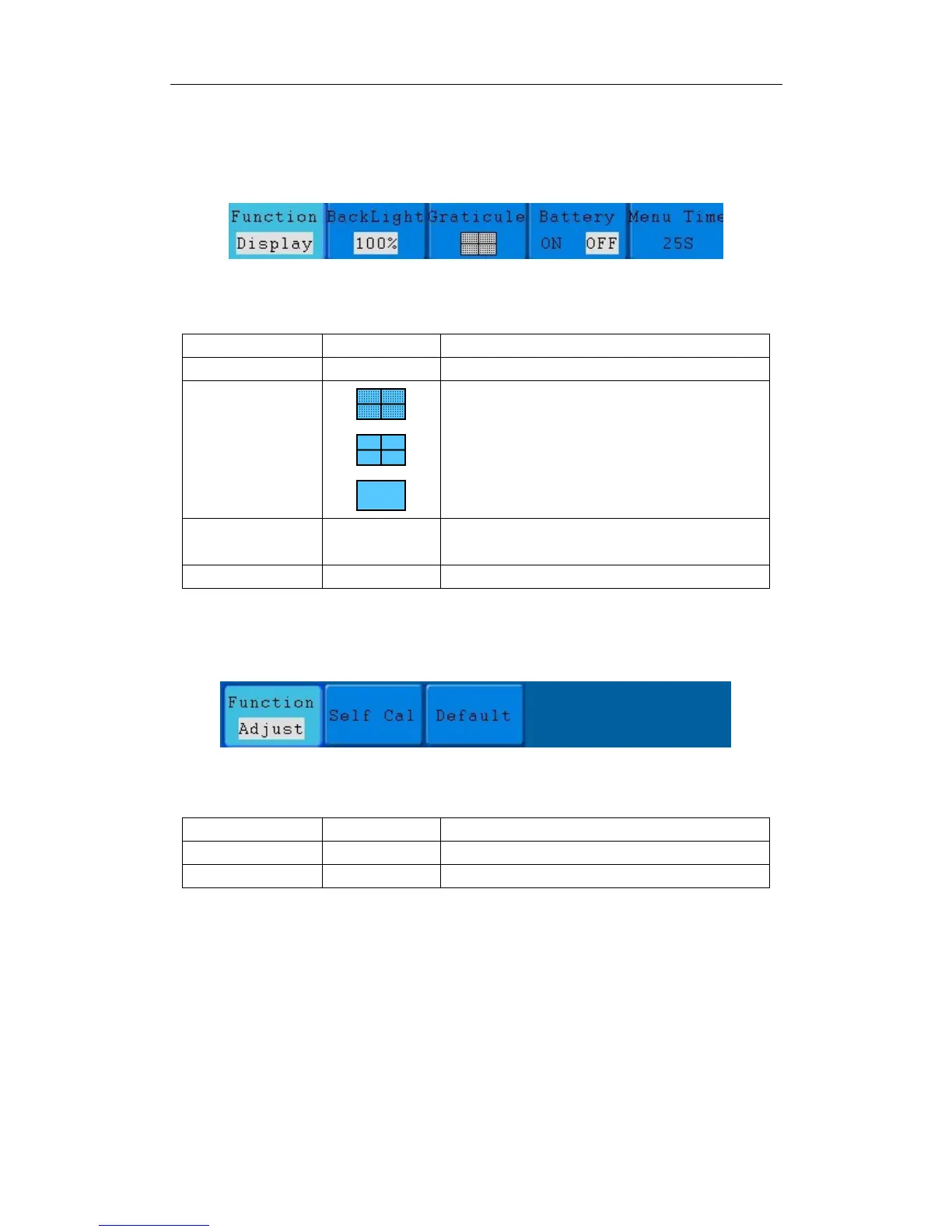 Press the Utility button and turn the M knob to select the Adjust to go to the following