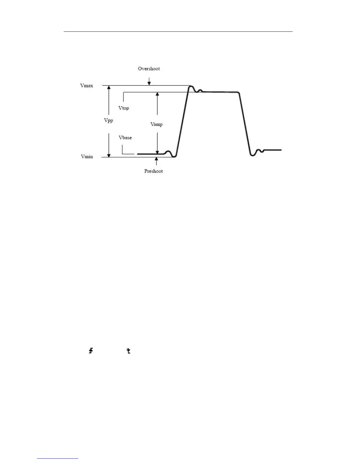 Preshoot: Defined as (Vmin-Vbase)/Vamp, useful for square and pulse