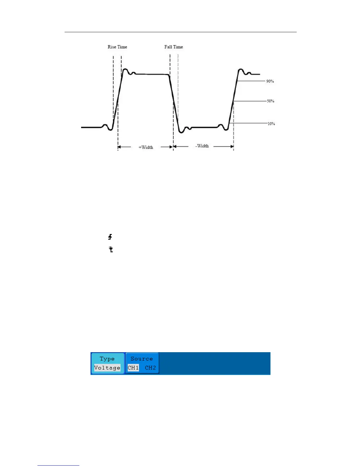 +Width: The width of the first positive pulse in 50% amplitude points.